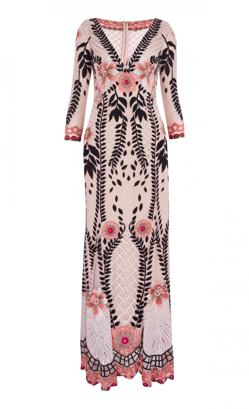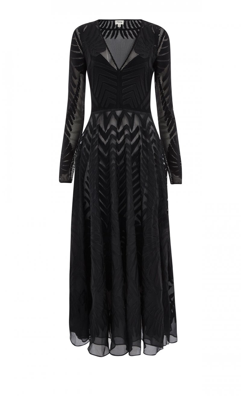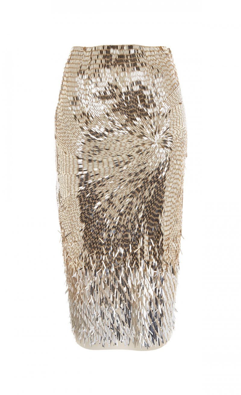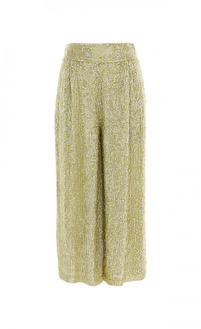 أمّا في ما يختصّ بمجموعة فساتين السّهرة فتميّزتْ بالطّابع الرّاقي، ملقيةً الضّوء على الفساتين الصّوفيّة الطّويلة والمُلامسة للأرض التي تميّزتْ بلمسة يتمتّع بها التّلاميذ، بالإضافة إلى الجامبسوتات الواسعة على مستوى السّاقين والمصنوعة من الدّانتيل. وما لفتَ أنظارنا في هذه المجموعة هو التّطريزات التّقليديّة على السّاتان والقطع الشّبيهة بالمرايا والتي تمّ تصميمها بشكلٍ مثاليّ والتّراتر المُعينيّة الشّكل التي تمّ تطريزها يدويّاً.