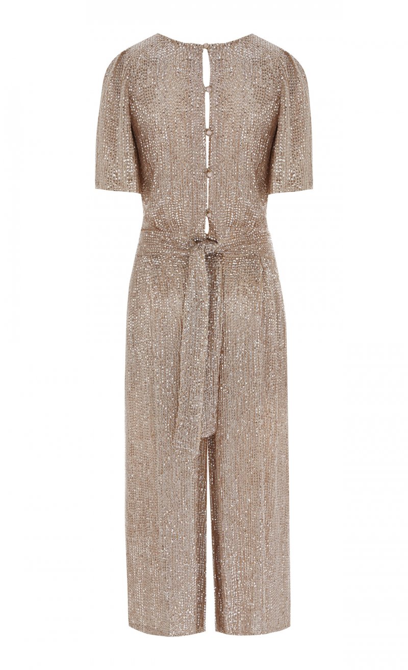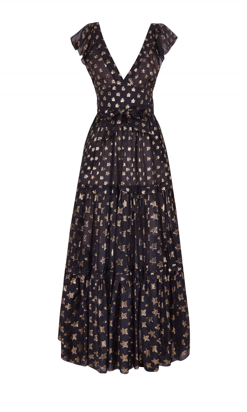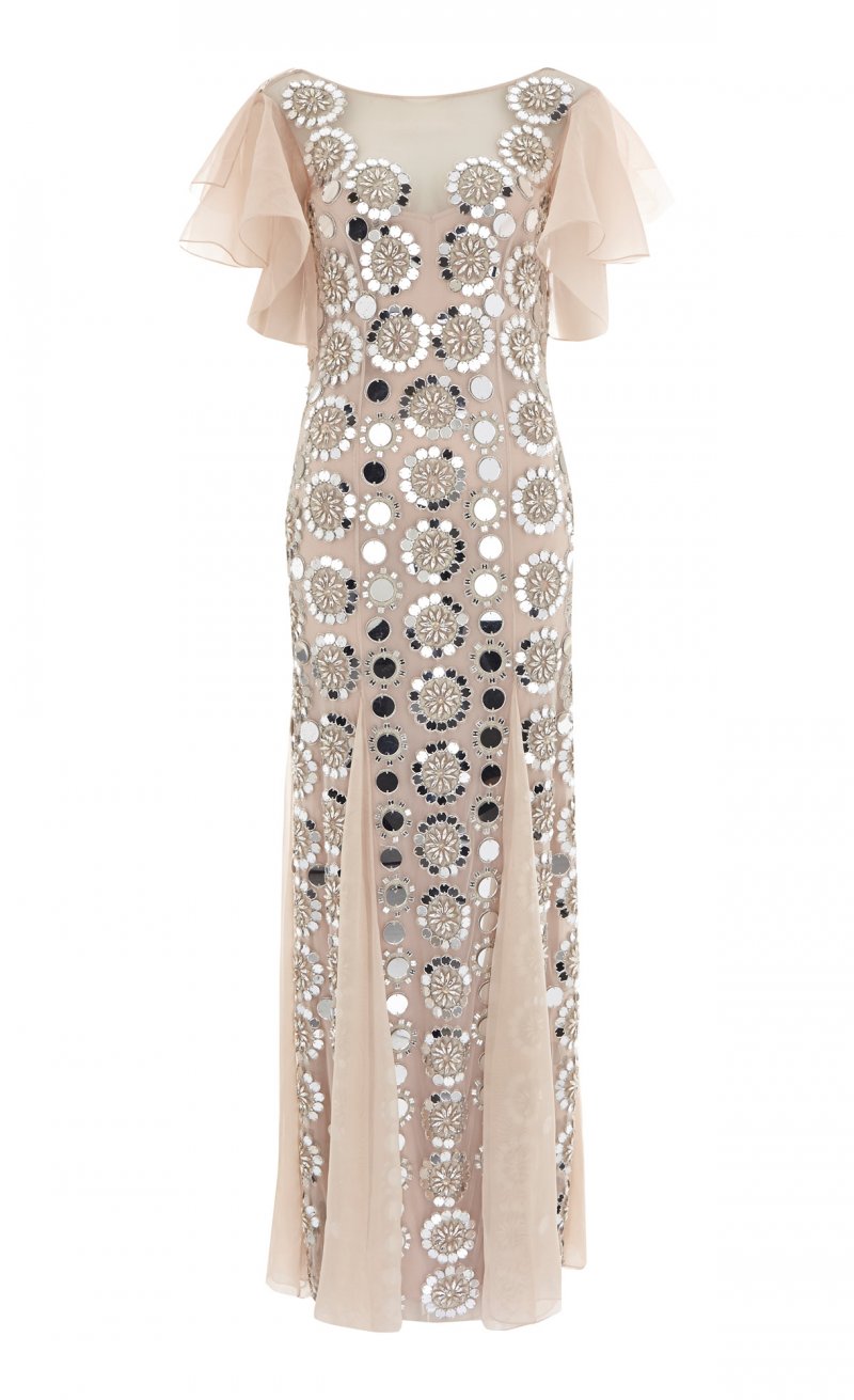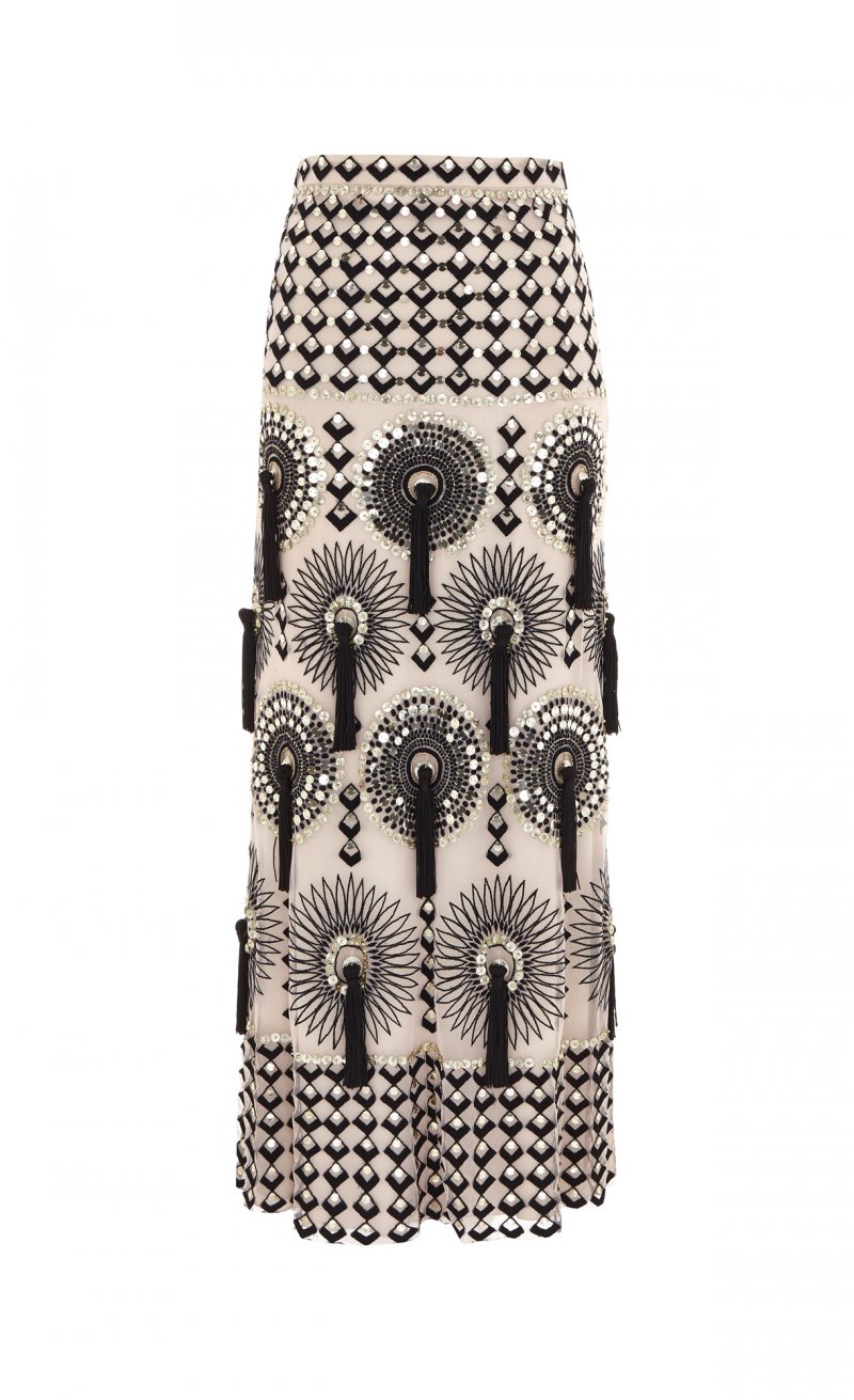 أمّا في ما يختصّ بمجموعة فساتين السّهرة فتميّزتْ بالطّابع الرّاقي، ملقيةً الضّوء على الفساتين الصّوفيّة الطّويلة والمُلامسة للأرض التي تميّزتْ بلمسة يتمتّع بها التّلاميذ، بالإضافة إلى الجامبسوتات الواسعة على مستوى السّاقين والمصنوعة من الدّانتيل. وما لفتَ أنظارنا في هذه المجموعة هو التّطريزات التّقليديّة على السّاتان والقطع الشّبيهة بالمرايا والتي تمّ تصميمها بشكلٍ مثاليّ والتّراتر المُعينيّة الشّكل التي تمّ تطريزها يدويّاً.