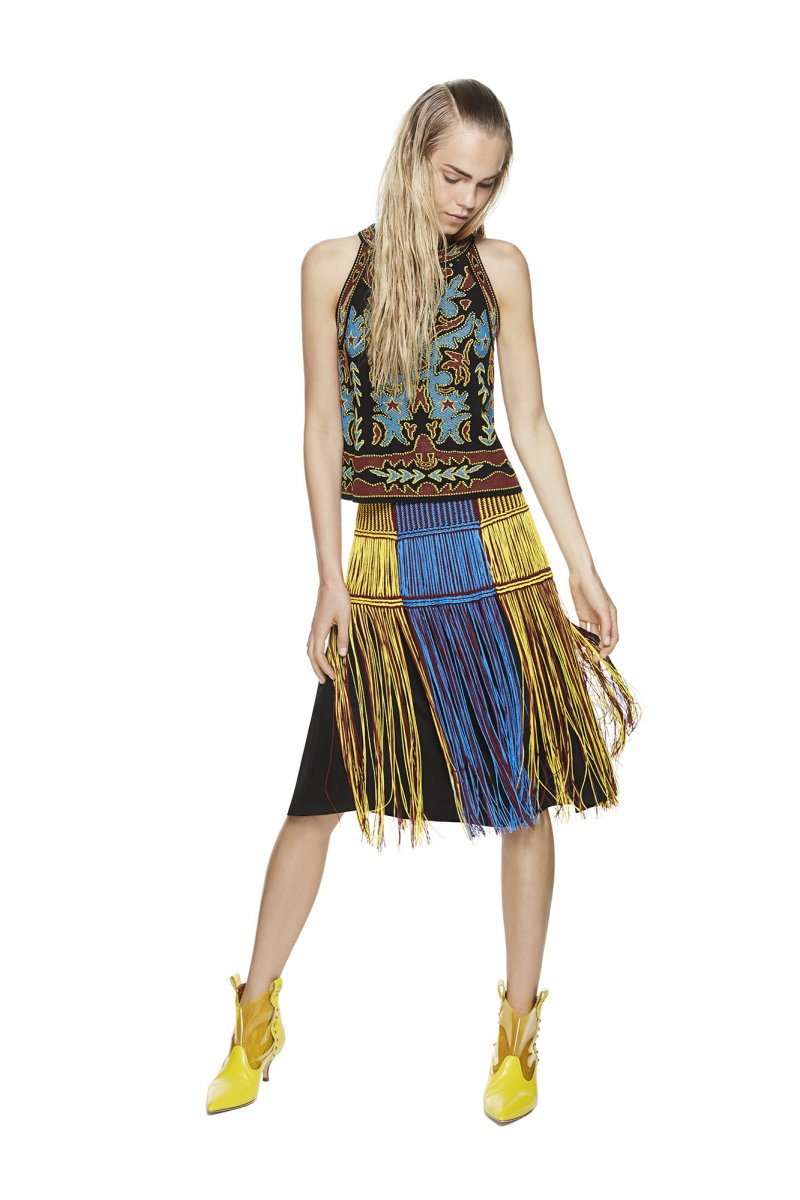 وجعلتْ علامة M Missoni من الشّراريب أفضل الصّيحات الحديثة! فإليكِ الطّريقة التي عرضتْ بها هذه العلامة الرّاقية هذه الصّيحة: استولت رسمة النّار على السّترات، في حين تلوّنت الشّراريب المتدليّة بالتّركواز والأزرق الدّاكن ولون النعناع الأخضر وتزوّدتْ تنّورة خفيفة مصنوعة من خشب شجرة النّخيل ببطانة سوداء باللّون الأزرق السّماويّ والبنفسجيّ المائل إلى الأحمر، إلى جانب لون زهرة عباد الشّمس الأصفر وأخيراً، تزوّدتْ سترة من قماش الجينز بشراريب وترقيعات على الكتفين مع لمسة من الوركس والصّوف الأصفر.