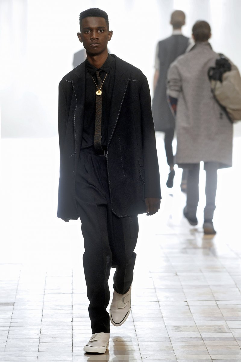 مشتْ عارضو الأزياء الواحد تلو الآخر في فناء أكاديميّة الفنون الجميلة، على أنغام أغنية “Fête noire” لفلافييه بيرجيه، باعثين روحاً فريدةً وفرديّة. وفي عالمٍ متعطّش للتّغيير المستمرّ، نجحتْ لانفان مرّة ثانية في أن تثبت لنا أنّ مجموعتها للملابس الجاهزة الرّجاليّة مميّزة عن غيرها من التّصاميم. ليس هناك أدنى شكّ بأنّ تصاميم لانفان الرّجاليّة تتسّم بالطّابع المعاصر، غير أنّها تتمتّع أيضاً بروح تميّزها عن غيرها.
