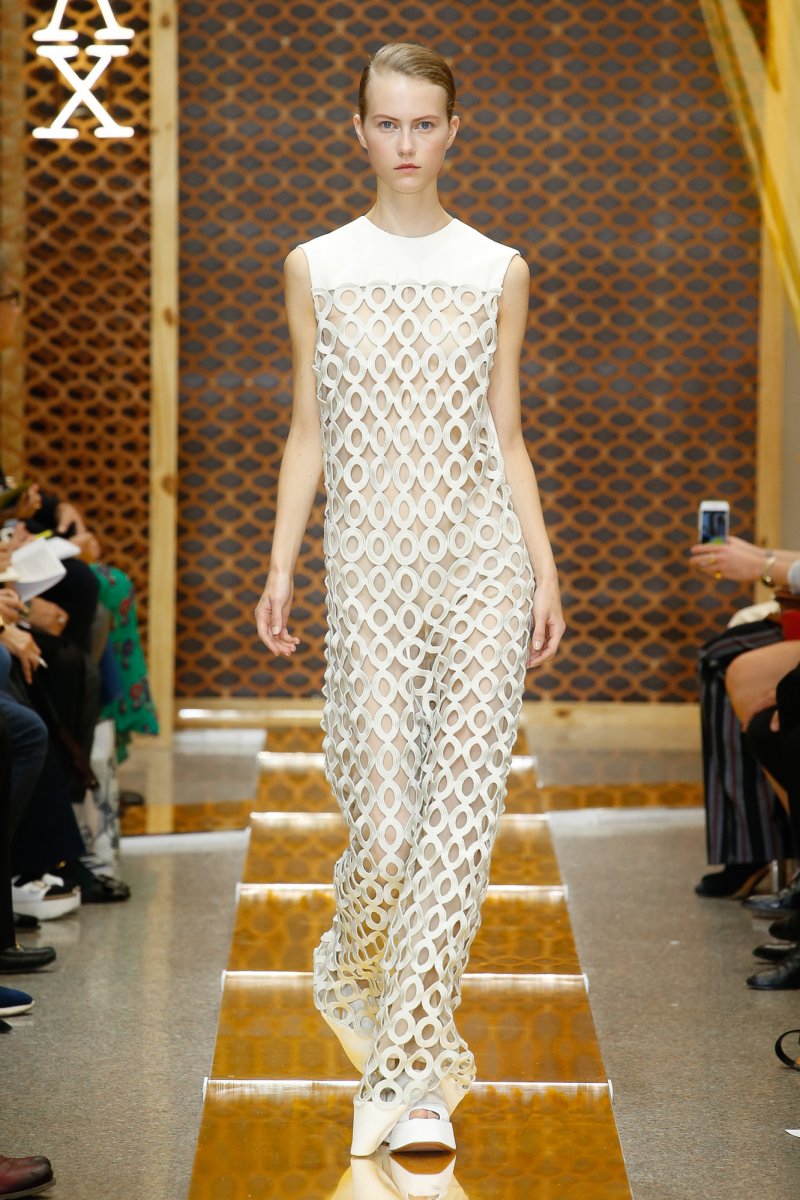 وتضمّنتْ إطلالة مذهلة جدّاً من المجموعة تطريزات الدّانتيل الشفّافة، في حين تضمّنتْ إطلالات أخرى الكثير من الطّبعات الرّبيعيّة في تصاميم مصنوعة من الشّبك والسّلاسل. فمزجتْ علامة Sportmax العناصر الإصطناعيّة والطّبيعيّة من خلال مجموعة ربيع وصيف 2016 المتوازنة.
