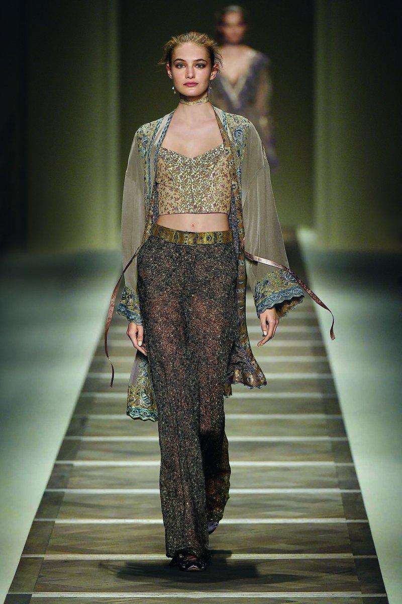 تضمّنت مجموعة ربيع وصيف 2016 الجريئة من علامة إيترو طبعات جذّابة وحنين بوهيميّ وألوان نابضة بالحياة. وأبدعتْ فيرونيكا إيترو لوحةً بوهيميّة تدخلين فيها فتضيعين في زوبعة من الكشاكش والتّصاميم الخفيفة. فجسّدتْ التّصاميم الفضفاضة رقص الغجر من خلال تشكيلة من الألوان النّاعمة والحياديّة.