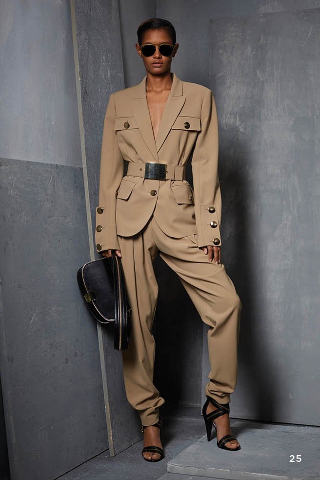 تخيّلي تصاميم تتّسم بطابعي الخمسينيّات والثّمانينيّات. تخيّلي أيضاً أزياءاً ذات طابع ذكوريّ، إلى جانب أنوثة الخواصر والأكتاف القويّة على الفساتين السّاحرة. فاستولتْ الطّبعات الذّكوريّة الممزوجة مع الإطلالات الأنثويّة على المجموعة، في حين زينّتْ الشّراريب أبسط التّصاميم. وكما لو أنّ هذه الأزياء لم تكن كافية لجعلنا نعشق المجموعة بقوّة، إستعان المصمّم بالتّفاصيل المزيِّنة، من السّحّابات إلى التّطريزات وغيرها من الإضافات! فمايكل كورس يتّبع حتماً الأسلوب البسيط الفوضاويّ بطريقة مثاليّة في تصاميمه!