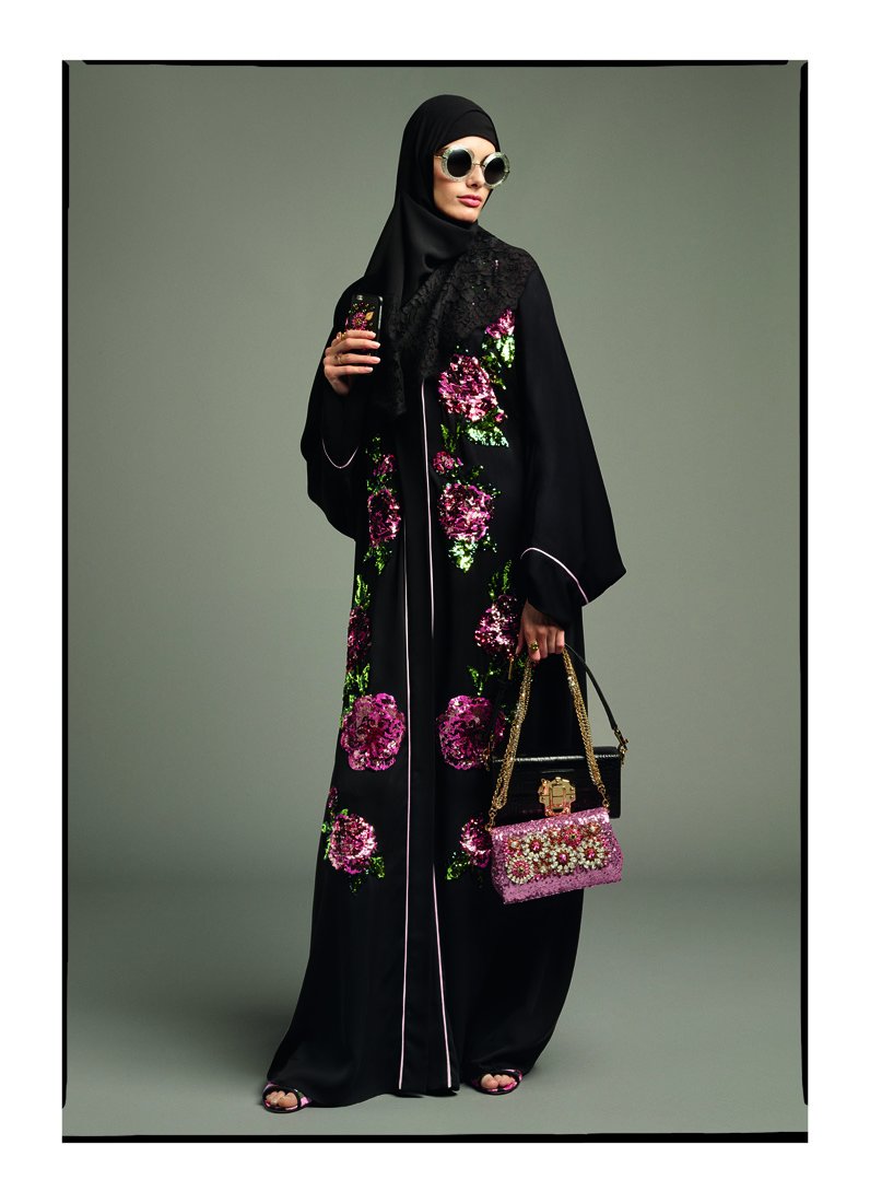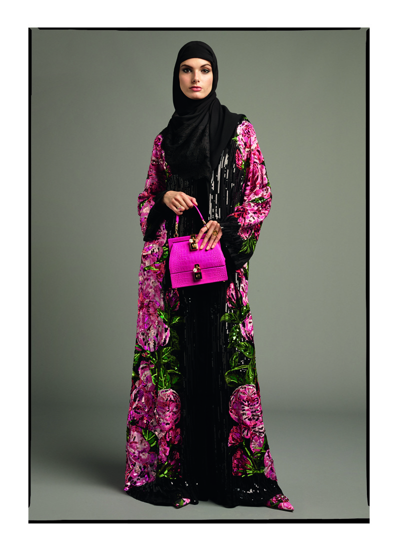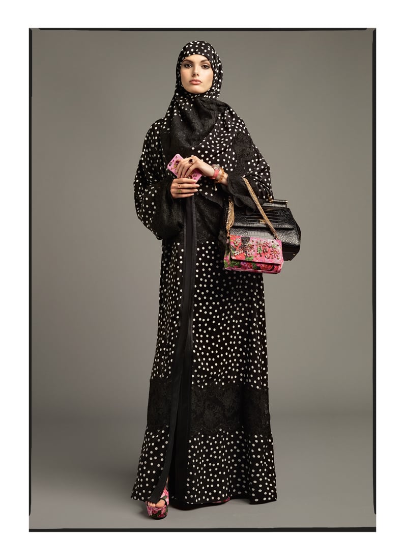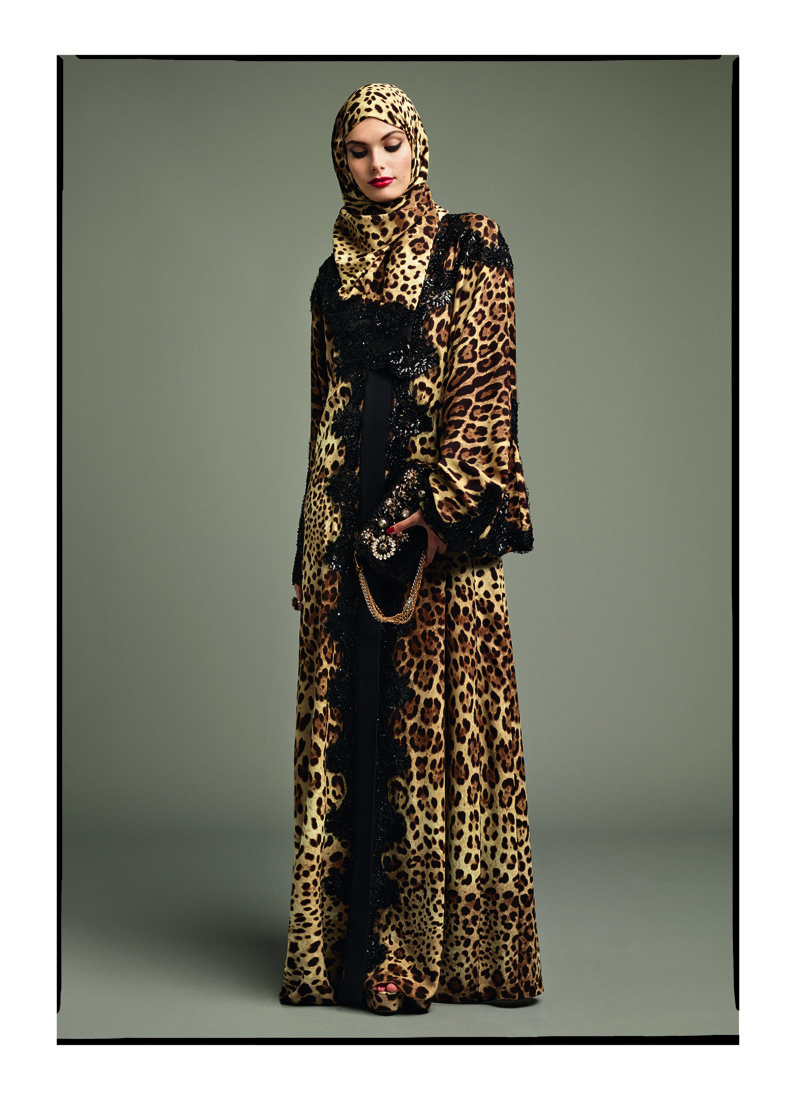 صمّمتْ دولتشي أند غابانا المعروفة بفساتينها التي تعشقها النّساء وتصاميمها الخياليّة، وللمرّة الثّانية على التّوالي، تشكيلة من العبايات وأحجبة المخصّصة للشّرق الأوسط. وبغضّ النّظار عن نظرتكِ لهذه المجموعة، تشكّل هذه الأخيرة تحفة فنّيّة تجسّد عبقريّة مبدعها! تخيّلي طبعات مزيّنة بالزّهور تستولي على عبايات سوداء، محدثة تبايناً جريئاً في الألوان. أمّا لمحبّات الطّبعات المجسّدة للحيوانات، صمّمتْ الدّار عبايات وأحجبة مزيّنة بطبعة جلد الفهد، تصاميم مذهلة بالفعل! برأينا الخاصّ، تمثّل كلّ من القصّات العربيّة والتّفاصيل المزيّنة للقطع مزيجًا فريداً من نوعه.