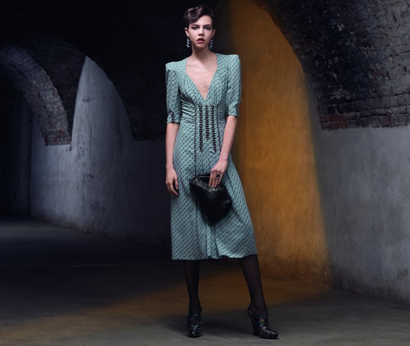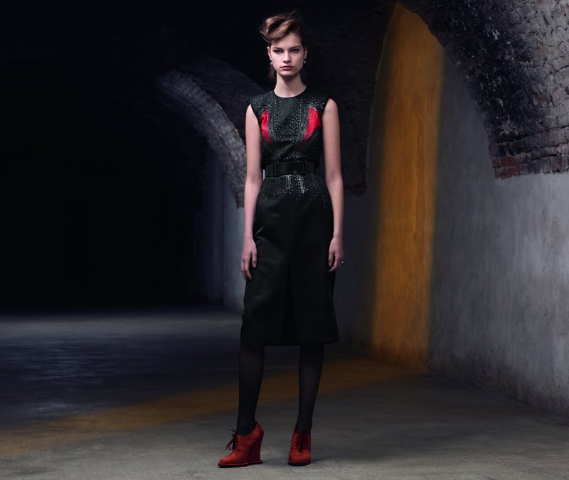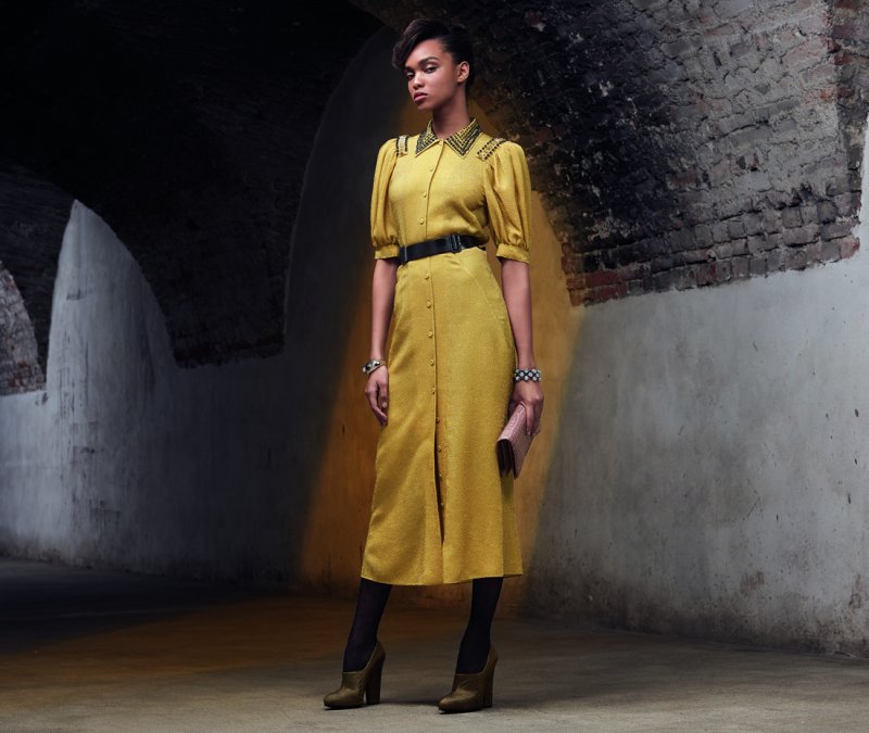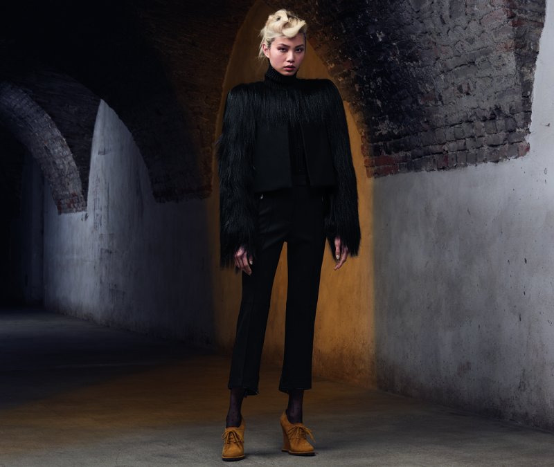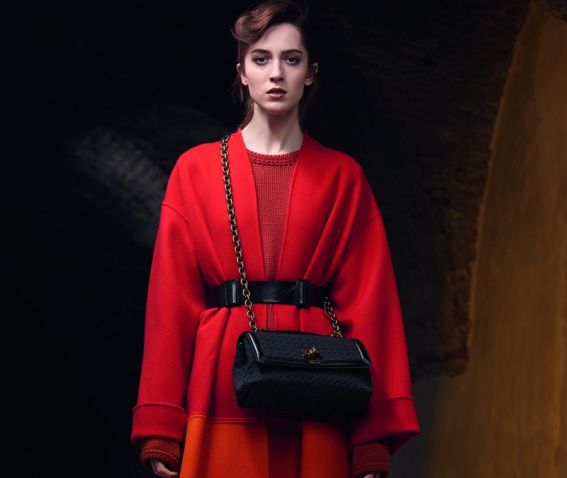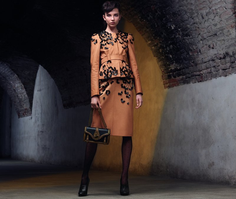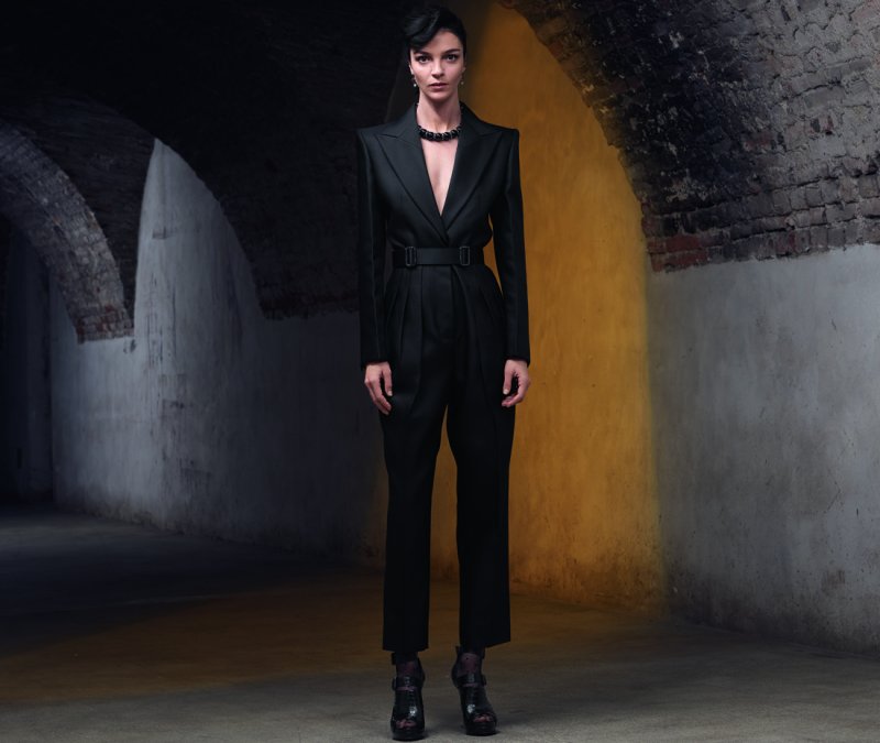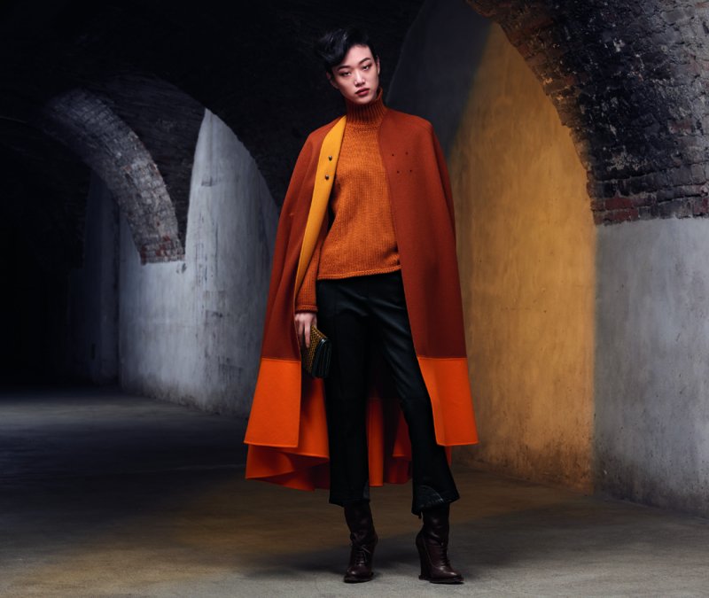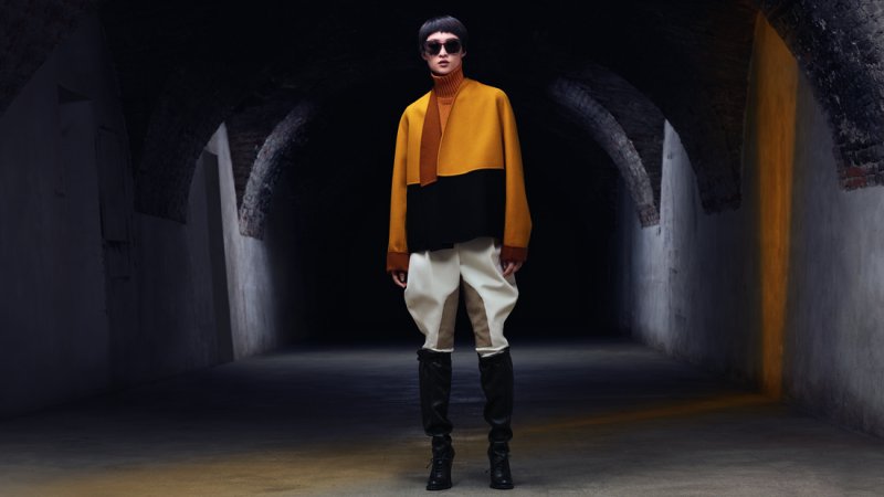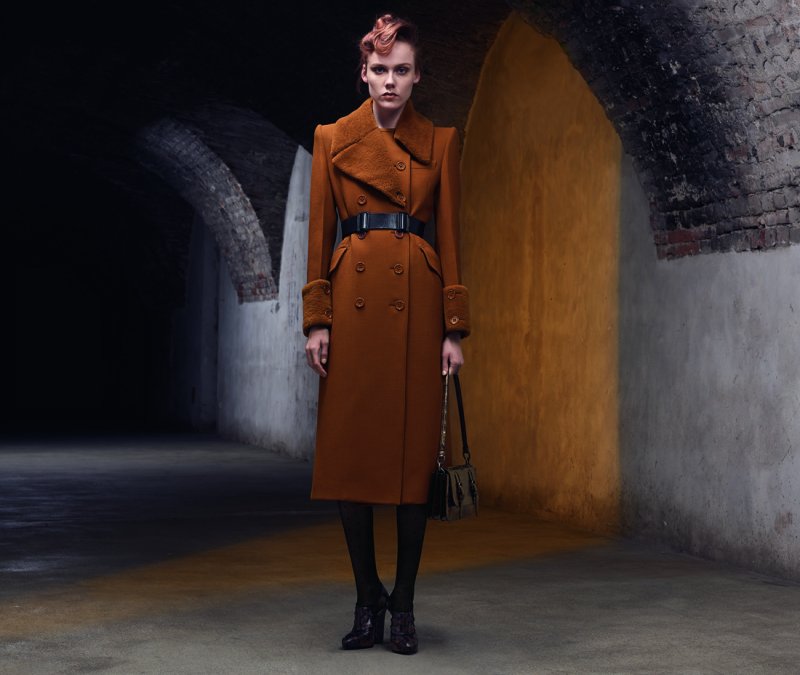 وظهرتْ عارضات أزياء نحيفات في إطلالات تكوّنتْ أغلبيّتها من سترات ومعاطف ذات وجهين وألوان متكاملة مصنوعة من الكاشمير، إلى جانب تصاميم ضيّقة جدّاً وسراويل الفروسيّة. وتضمنّتْ المجموعة أيضاً قطع صوفيّة مميّزة ذات أشكال مبالغ فيها، إلى جانب تلك المزوّدة بصفّين من الأزرار، مجسِّدة بذلك المرأة القويّة بكلّ عظمتها. وسلّط ماير الضّوء على المواد التّعبيريّة بكلّ الطّرق الصّحيحة المُتاحة له، من صوف الماعز المسرَّح إلى جلد الخروف والجلد اللّمّاع وذاك الخالي من اللّماعيّة. وتراوحتْ ألوان التّصاميم بين لون الخردل الأصفر والأحمر المائل إلى البنّيّ والأزرق الفاتح. وإتّسمتْ التّصاميم المسائيّة بالأسلوب الباهر، إذ أتتْ على شكل فساتين سهرة مزيّنة بخيوط معدنيّة طويلة وفساتين لمّاعة وأخرى منمّقة بخيوط ومسامير معدنيّة. وأتتْ الإطلالات مرفقة بأحذية عالية ذات الكعب والكعبيّة المتّصلين وتصاميم ذات كعوب ثخينة وحقائب ذات خطوط واضحة.