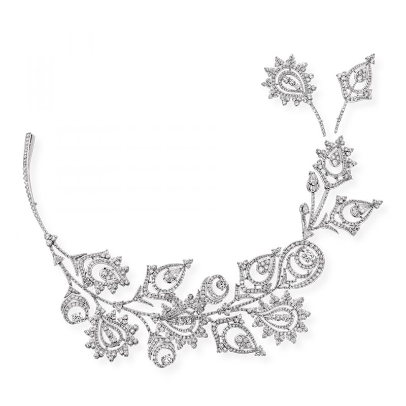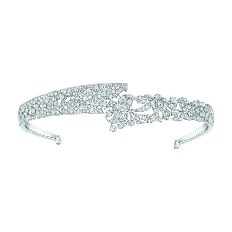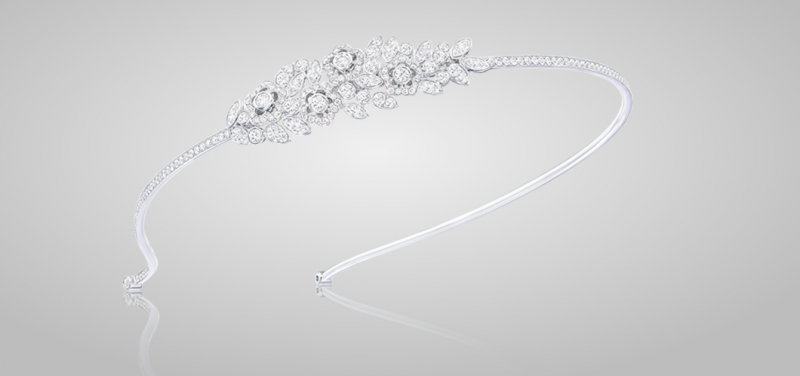وتشكّل كلّ من حبّات الماس والذّهب الأبيض والبلاتين عناصر أساسيّة في هذه الأكسسوارات التي تتماشى بمثاليّة مع فستانكِ. وهذا ما نراه في تصاميم كلّ من ديفيد موريس وشانيل وبوشرون ودار غارارد وغراف وفي حين أضافتْ شوميه لمسة من الإشراقة إلى تيجانها عن طريق حبّات الماس الصّفراء وبعض اللّؤلؤ، إختارتْ كارتييه إعتماد الأسلوب الجريء من خلال تاج/عقد Hyperbole الرّاقيّ المرصّع بحبّة زمرّد كولومبيّ مربّعة يبلغ عيارها 140.21 قيراط.