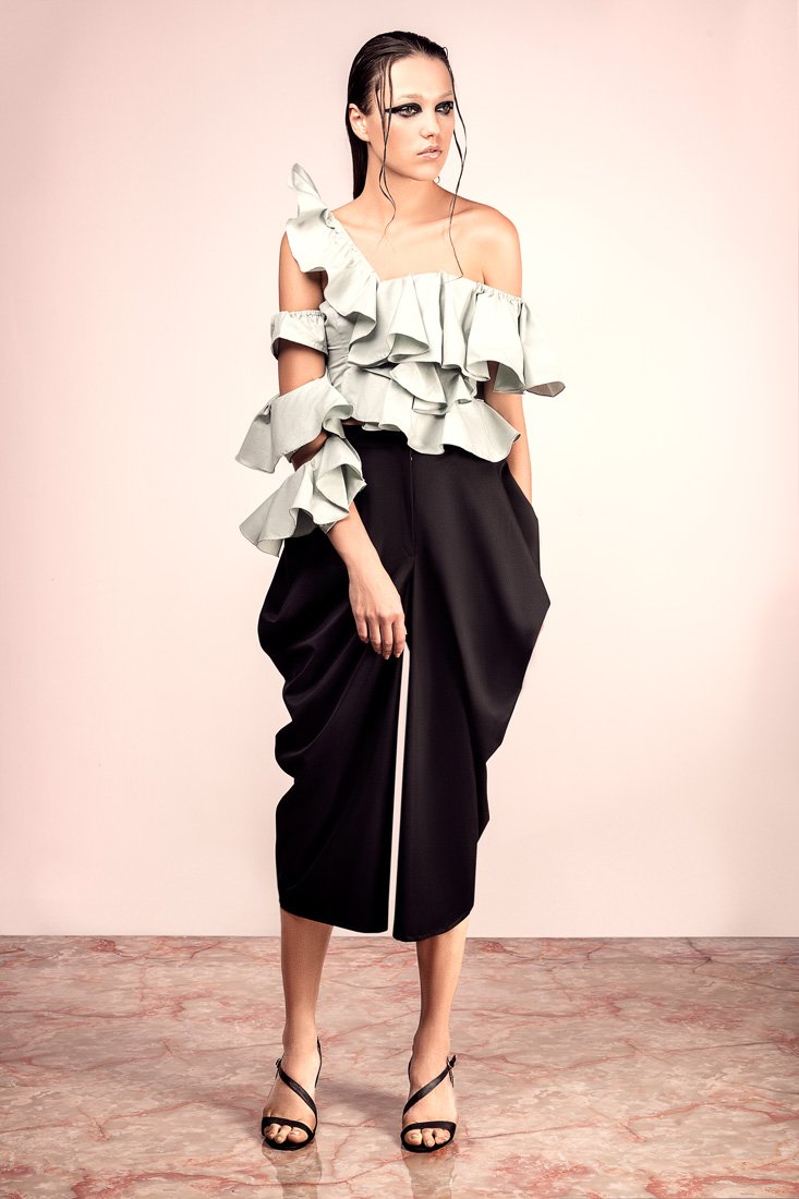 جسّدتْ عائشة ديبالا، المصمّمة المقيمة في دبي، إزدواجيّة شخصيّة المرأة المعاصرة من خلال مجموعتها لربيع وصيف 2018 المكوّنة من 32 قطعة جاهزة تمزج الأنوثة مع الطّابع الذّكوريّ. فجمعتْ المصمّمة الرّقّة بالقوّة من خلال تشكيلة من الملابس من بينها تصاميم مكشوفة على مستوى الكتفين وكشاكش منتفخة تجسّد كلّها الطّابع السّاحر المتّسم بالأسلوب الرّياضيّ.