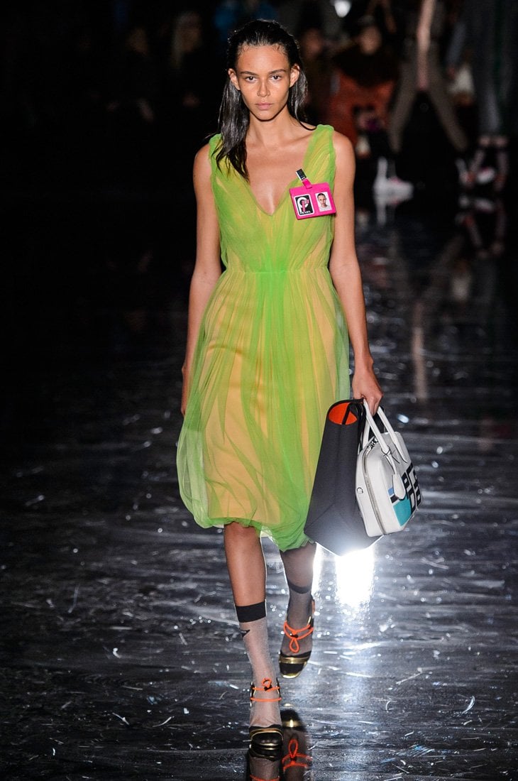 ليس من المعيب أبداً أن ترغبي في خطف الأنظار أينما ذهبتِ؛ ومن الطّرق المضمونة للقيام بذلك إعتماد ألوان النّيون – شكراً برادا على هذه الفكرة الرّائعة.
