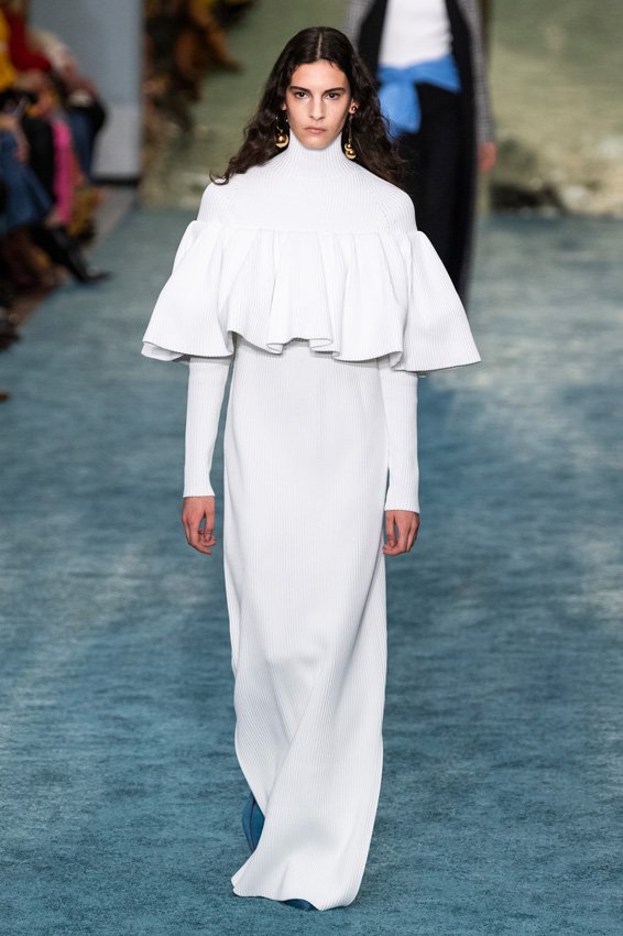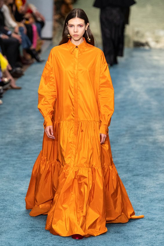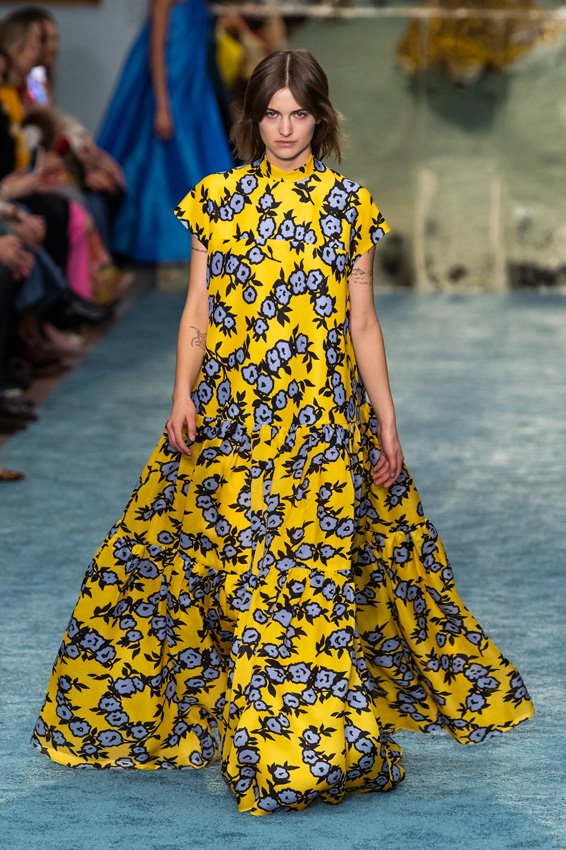 أيقظتْ هذه العلامة من خلال مجموعتها لخريف وشتاء 2019-2020 فينا ذكريات الرّبيع الجميلة من خلال أبعاد مبالغ بها وألوان جريئة. وتجسّد ذلك في زهور مطرّزة راقية وألوان الباستيل وألوان زاهية والأهمّ من ذلك، الأحجام الكبيرة!شهد الحضور على بدلات رسميّة باللّون الأزرق الزّاهي وفساتين واسعة مزيّنة بالزّهور ومكشوفة على مستوى كتف واحدة وبلوزات مزرّرة منمّقة بطبعات مختلفة، إلى جانب البدلات المزيّنة بمربّعات ذات الأجزاء المفرّغة. وأُرفقتْ الإطلالات بحقائب صغيرة متقاطعة مع الجسم أحدثتْ تبايناً جميلاً مع التّصاميم الفضفاضة. وتضمّنتْ المجموعة أيضاً قمصاناً فضفاضة جدّاً بألوان السّوربيه وبلوزات مصنوعة من الأورغانزا مُرفقة بسراويل أنيقة جدّاً. وجسّد فستانٌ مصنوع من الشّيفون جمال الطّبيعة بتدرّجات اللّون البرتقاليّ التي إستولتْ عليه. فكانتْ المجموعة عبارة عن قطع مميّزة جريئة وألوان زاهية!