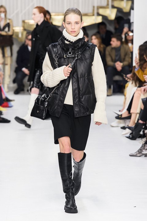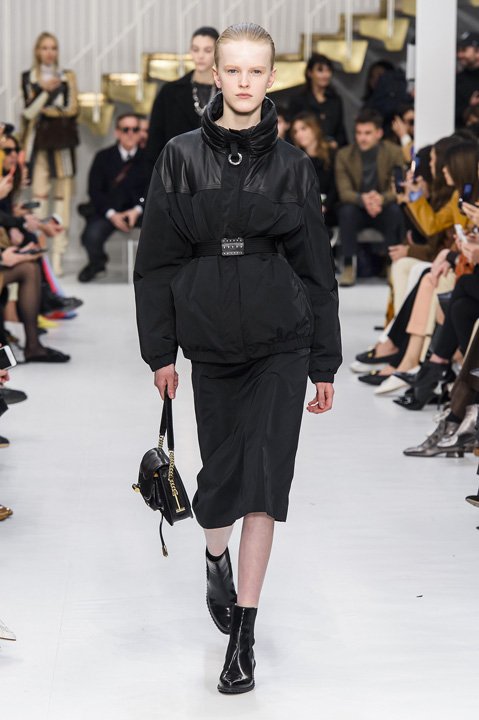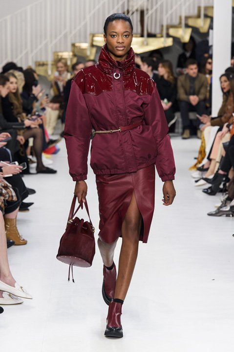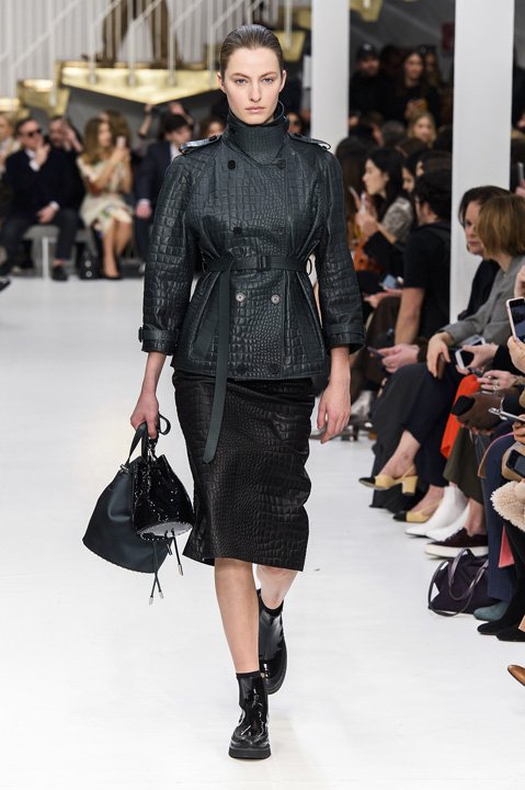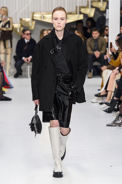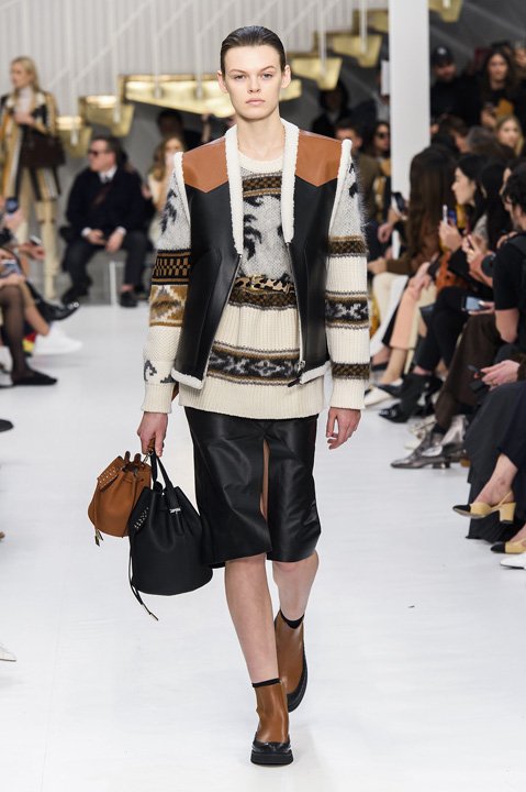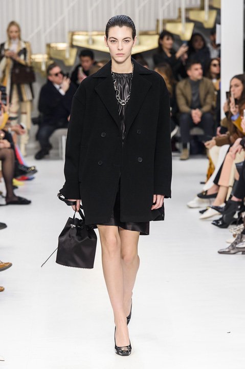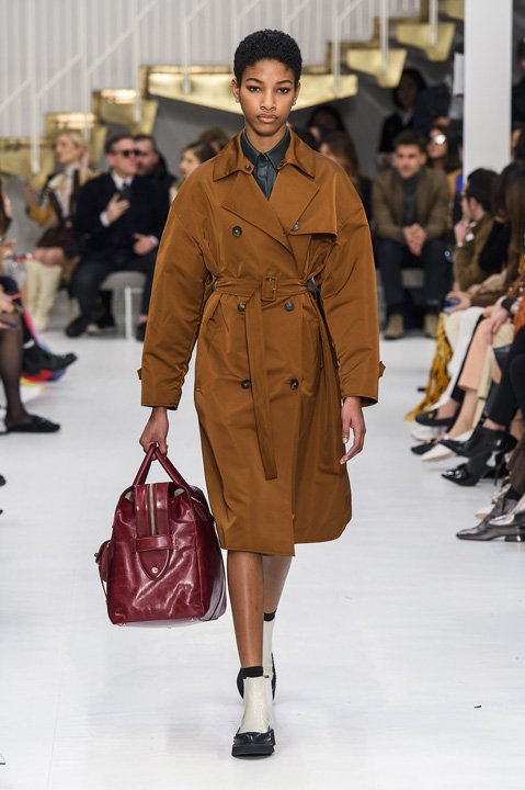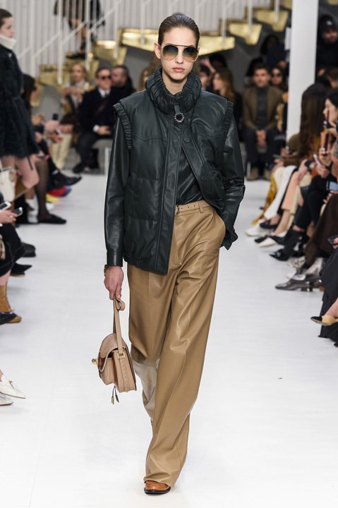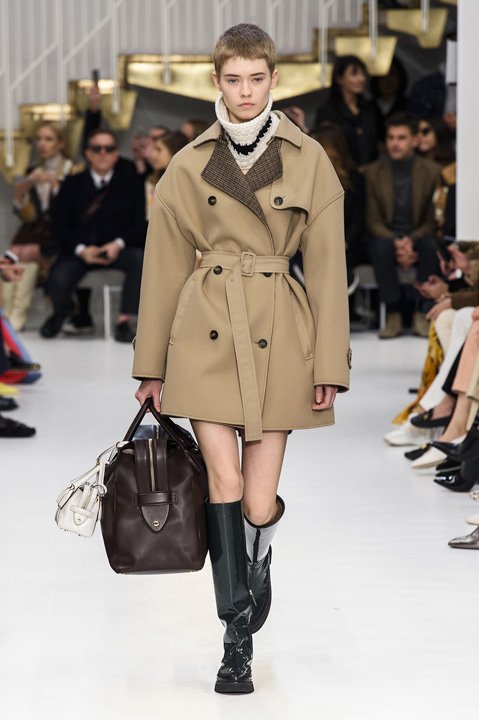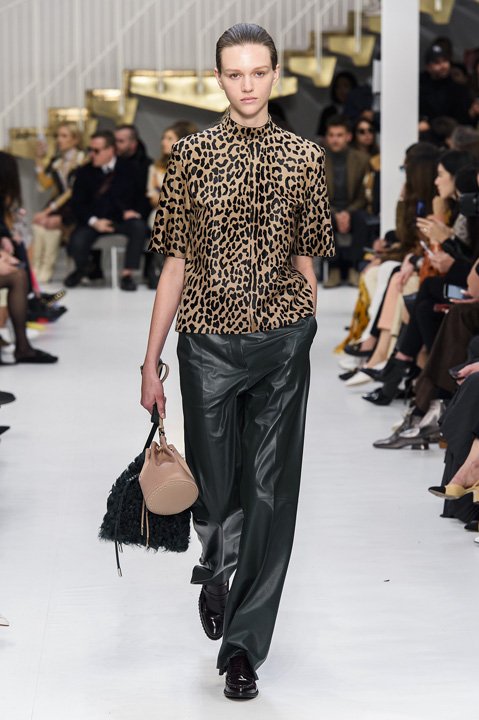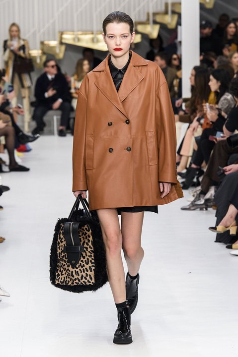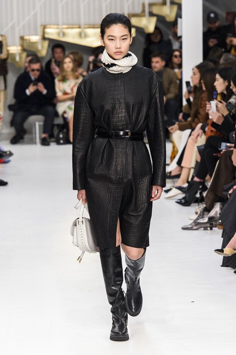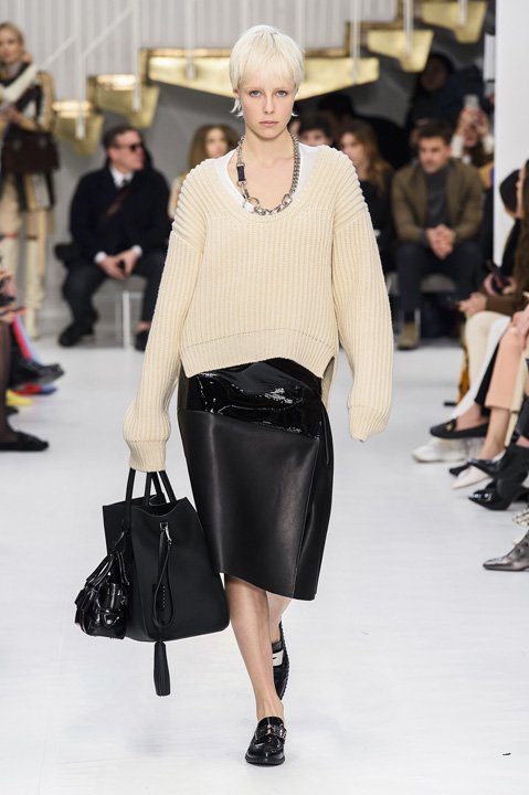 لطالما إشتهرتْ هذه الدّار الإيطاليّة بإتقانها التّعامل الحرفيّ مع كافّة أنواع الجلود وأثبتتْ لنا هذه الأخيرة ذلك مرّة أخرى من خلال هذه المجموعة التي تضمّنتْ إطلالات إستولى الجلد عليها بشكل كامل. وهذا يعني، بلغة تودز طبعاً، عدد كبير من معاطف التّرانش الجلديّة الرّاقية جدّاً وتنانير جلديّة متوسّطة الطّول وبلوزات جلديّة وتصاميم أخرى مصنوعة من هذه المادّة. أرفقتْ الإطلالات كافّة بأحذية جلديّة تخطّتْ مستوى الرّكبة وبعضها إستولتْ عليه طبعة جلد التّمساح أيضاً. وانعكس مزاج المجموعة على التّصاميم الدّاكنة اللّون ثمّ شهد الحضور على ألوان أفتح، فظهر الكاميل أوّلًا لتتبعه ألوان زاهية أخرى.