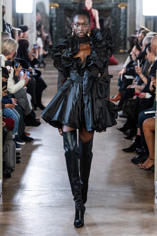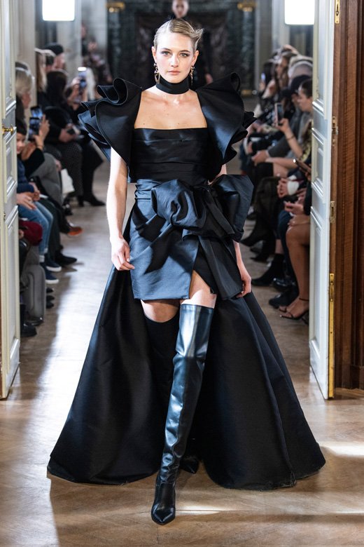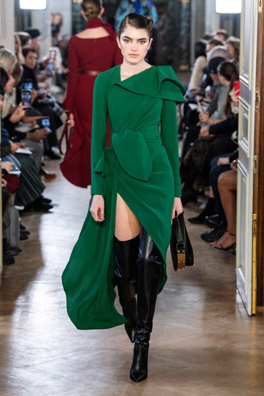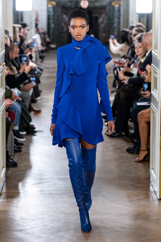 إنّها راقية وجذّابة ودائمة الأناقة؛ أجل، شهدت العاصمة الفرنسيّة اليوم على روح إمرأة علامة إيلي صعب النّموذجيّة. فتضمّنت المجموعة فساتين متوسّطة الطّول مصنوعة من قماش الكريب منمّقة بكشاكش ومرفقة بأحذية جلديّة متناسقة عالية المستوى. إتّسمتْ الفساتين بأناقة راقية في حين شهد الحضور على بدلة رسميّة مخمليّة حالمة جدّاً.