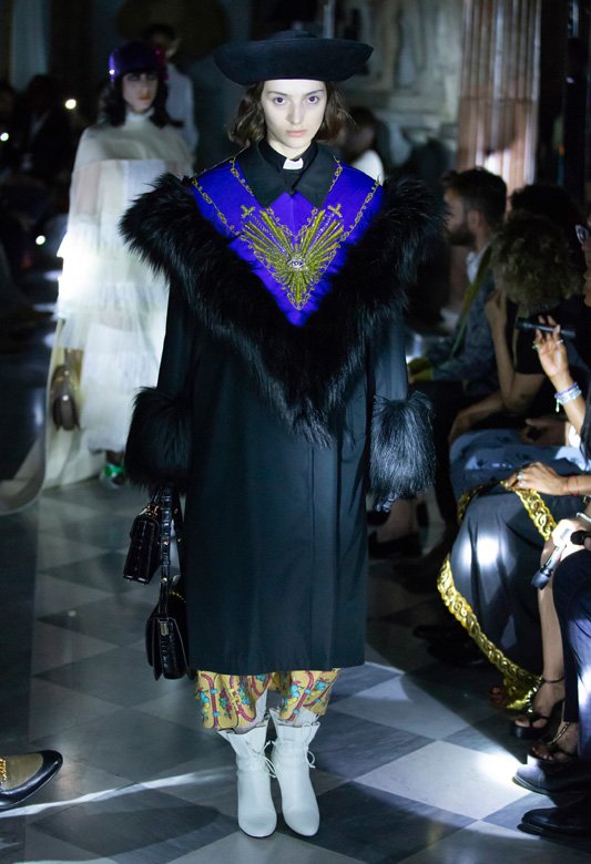 فلا مكان مثاليّ لجمع الماضي بالحاضر أكثر من أقدم متحف في العالم حيث دُعي الضّيوف للإستمتاع بالتّجرية الجميلة والغريبة التي جسّدت إرث الدّار. عمّ الظّلام على الموقع فأرسل ميشال عارضات الأزياء إلى المدرج ليسرن تحت الأضواء المتواجدة في المكان. تضمّنت المجموعة عدداً كبيراً من العناصر الرّومانيّة، من الأردية الحمراء المتطايرة إلى أردية توغا الرّومانيّة القديمة والقمصان الطّويلة الفضفاضة، إلى جانب تشكيلة من العناصر التي تجسّد الفاتيكان. وفي ظلّ كلّ هذه المراجع القديمة، تجسّدت إنتقائيّة أليساندرو ميشال الجريئة بشكل واضح جدّاً وبخاصّة من خلال تصميم شخصيّة ميكي ماوس وتقنيّات الأقمشة المكسّرة الجميلة. ولعلّ حرّيّة الإختيار كانت أكثر موضوع ملهم في هذه المجموعة وتجسّد ذلك في القمصان التي إستولت عليها عبارةMy body, my choice”. بحث ميشال الأبديّ عن طرق جمع الطّابع العتيق الطّراز مع الحرّيّة العصريّة هو أمر يجب أن يتمّ مدحه وشكّل عرض مجموعة كروز 2020 إثباتاً على جهوده الكثيرة في هذا المجال.