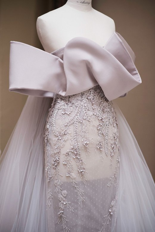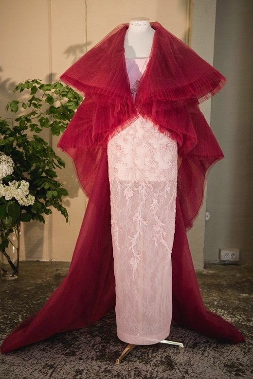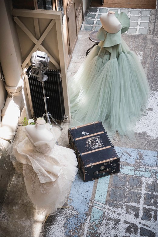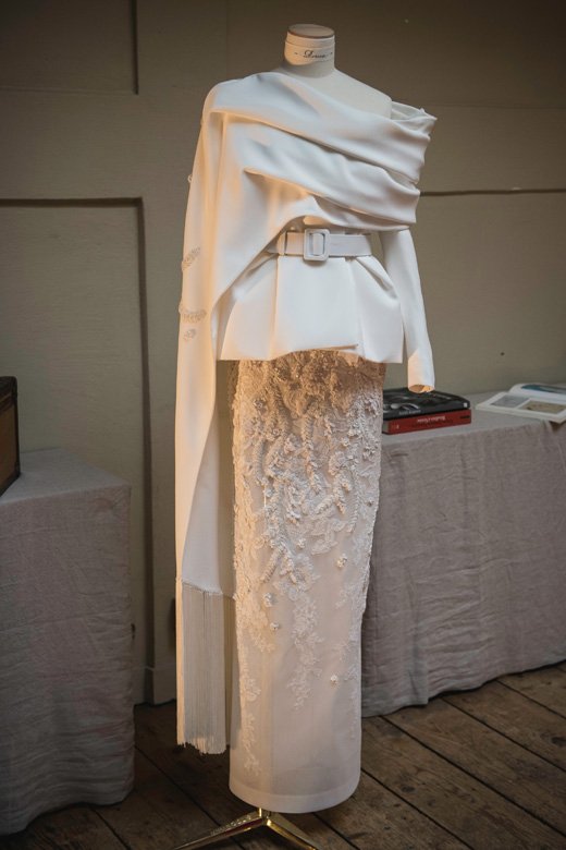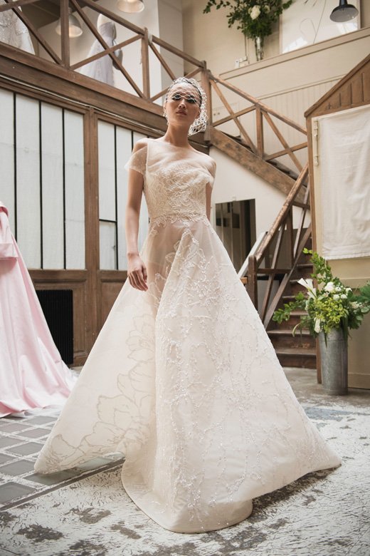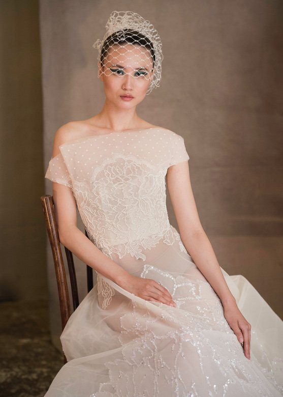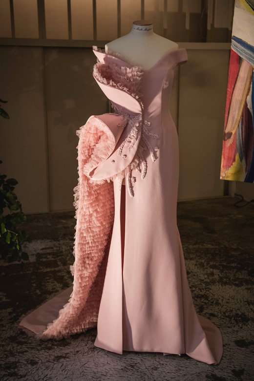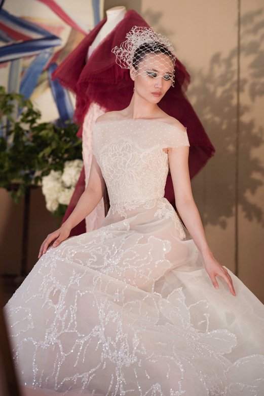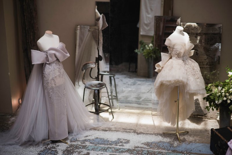 فبالإستيحاء من المصوّر الشّهير، نقلنا الثّنائيّ إلى الماضي في لحظةٍ عابرة وتحديداً إلى إستيديو يعود لمصوّر من حقبة الخمسينيّات. وهذا يعني، بالمعنى الأكثر تفصيلاً، خفّة حركة تمّ التّوصّل إليها من خلال الصّناعة الحرفيّة الرّاقية باستخدام التّول والدّانتيل. وتراوحت الألوان بين الزّهريّ ولون زهرة السّحلبيّة والقرمزيّ الأحمر ولون الغاردينيا ولون الخزامى الباهت واللّيلكيّ المائل إلى الرّماديّ وهذا يدلّ على إستيحاء مصمّمي الأزياء من عطور الزّهور الرّاقية. وتخلّل العرض الذي إتّسم بالطّابع الرّومنسيّ 24 إطلالة تستحقّ أن تظهر على السّجّادة الحمراء، من الفساتين المفعمة أنوثةً إلى تلك الطّويلة المتّسمة بأبعاد مبالغ بها وسترات عتيقة الطّراز وإطلالات متّسمة بطابع ذكوريّ مثل البدلات الرّسميّة الأنيقة جدّاً. وما لفت أنظارنا في العرض تجسيد فريد من نوعه لصورة Aphrodisiacsالأيقونيّة التُقطت بعدسة بين إتّخذ شكل فستان تضمنّ الكثير من التّول إلى جانب دانتيل Chantilly وحرير Gazar وتطريزات على شكل خيوط ودانتيل ليو، وكانت هذه العناصر سرّ سحر التّصميم الذي تزيّن بربطة إتّخذت شكل عُملة المئة دولار أمريكيّ على مستوى الظّهر، تماماً كما في الصّورة التي إلتقطها المصوّر. ويعتبر هذا الفستان الذي أبدعه فريق عمل مؤلّف من 6 حرفيّي تطريز وتطلّب أربعمئة ساعة عمل، تحفةً فنّيّة تُحفر في الأذهان.