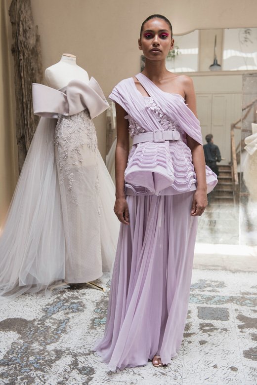 تضمّنت مجموعة خريف وشتاء 2019-2020 من هذه العلامة الإطلالات الأنيقة التي لطالما إشتهرت بها هذه الأخيرة ومنها التّصاميم المقعرة على مستوى الخصر المصنوعة من الحرير الرّاقي وقماش Double Satin Duchesse. ذكّرتنا تصاميم العرض بالأقمشة التي كانت تُستخدم في الخمسينيّات، أيّ إنّها كرّمت الطّابع العتيق الطّراز والسّحر العصريّ في الوقت عينه. بالنّسبة لأغلب الأشخاص، قد تبدو المجموعة تحفةً فنّيّة أخرى من إبداع مصمّمي الأزياء الموهوبين. ولكن لدى التّمعّن أكثر فيها، ستجدين تاريخ الهوت كوتور ينكشف أمام عينيك، إذ إجتمع كلّ من عالم التّصوير والفنّ والموضة بطريقة متناغمة جدّاً في تشكيلة من الإطلالات التي تحتفل بموهبة المصوّر إيرفينغ بين.