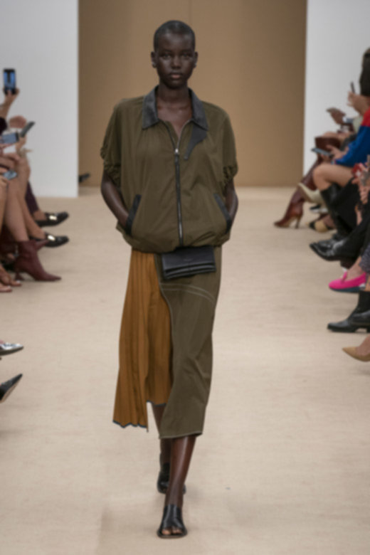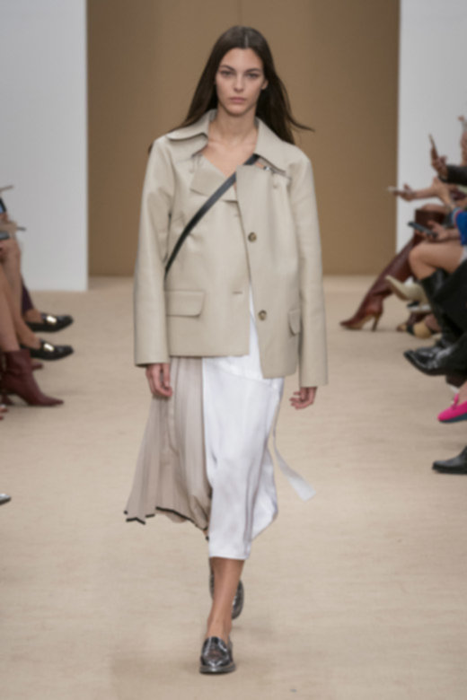 وعلى الرغم من ذلك، نشعر أنّنا أحيانًا ننسى مدى روعة هذه الدار الإيطاليّة ففي خلال كلّ عرض تذكّرنا العارضات بذلك وهنّ يتبخترن على المدارج بكلاسيكيّة مطلقة. ولم تكن هذه المرّة المجموعة أقلّ سحرًا من تلك التي سبقتها. فقد رأينا الجلد الذي تشتهر به الدار مستخدم بطرق مختلفة وفي عدّة تصاميم فأُذهلنا بالمعاطف الجلديّة والتنانير الجلديّة المكسّرة المتوسّطة الطول والجلد المزخرف وذلك المصنوع من الفينيل. أمن أمرٍ أجمل من الجلد؟ وبالتأكيد تمّ عرض البدلات الرسميّة الاعتياديّة أيضًا وسترة رسميّة مميّزة متماشية مع شورت بيرمودا ذي سحر صبيانيّ. وبشكلٍ عام، لاحظنا لمسة من التمدّن في المجموعة لم تكن لتظهر لولا من بعض القطع ذات طبعات الحمار الوحشيّ وطبعًا أحذية الموكاسان المزخرفة.