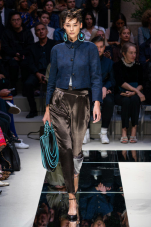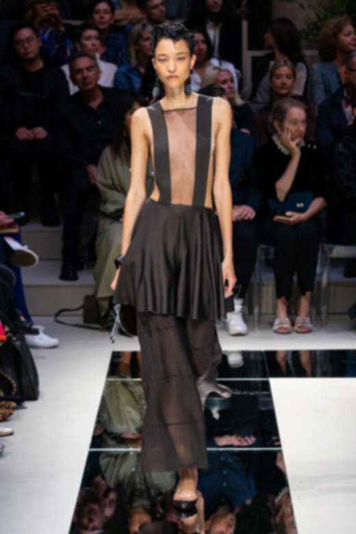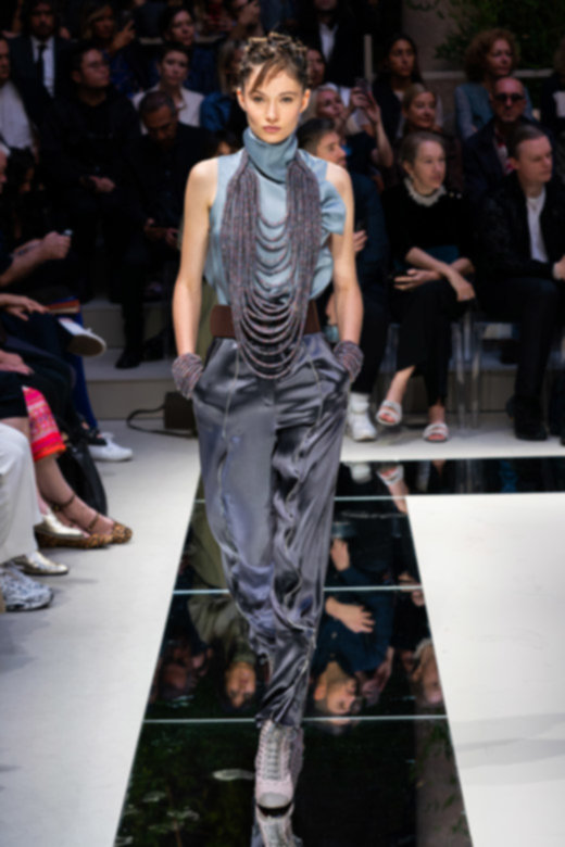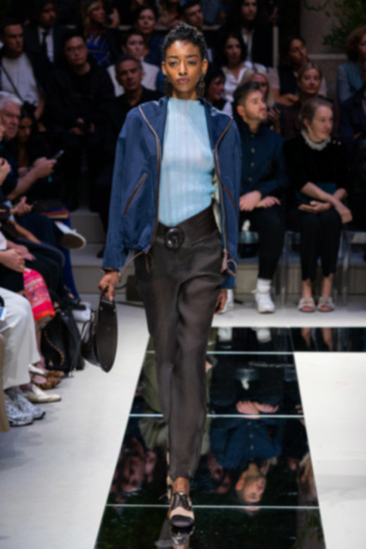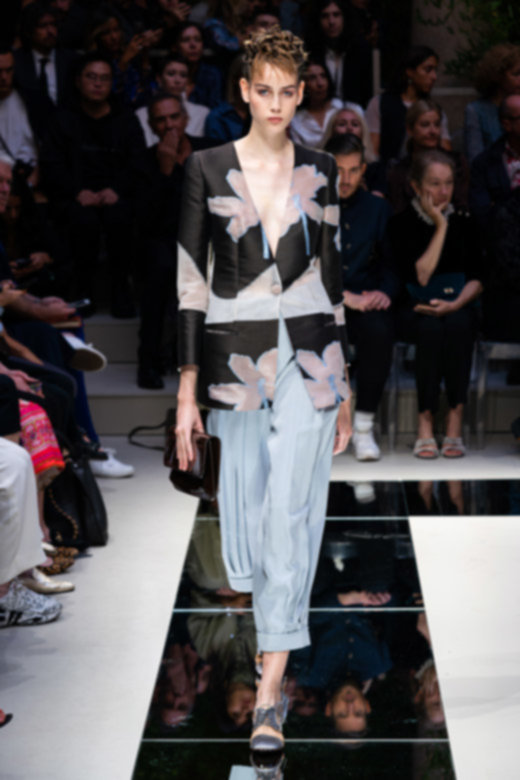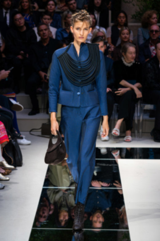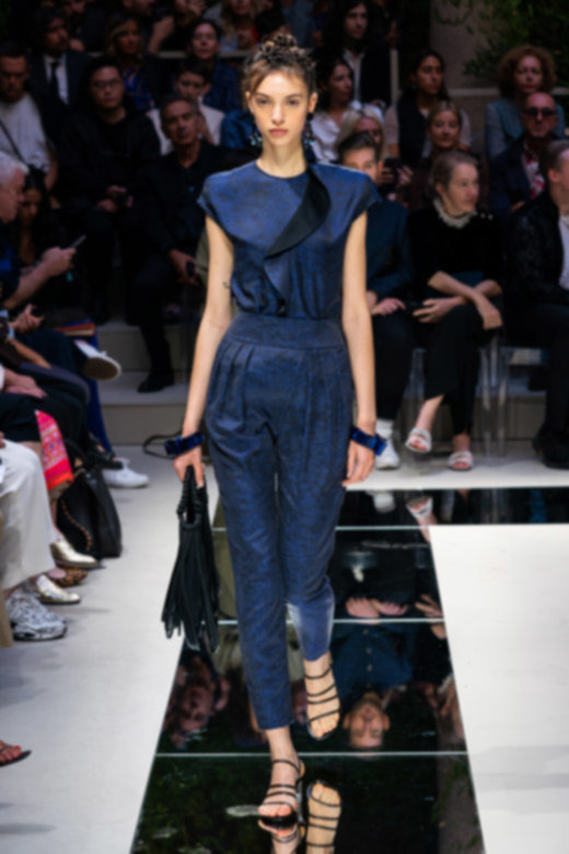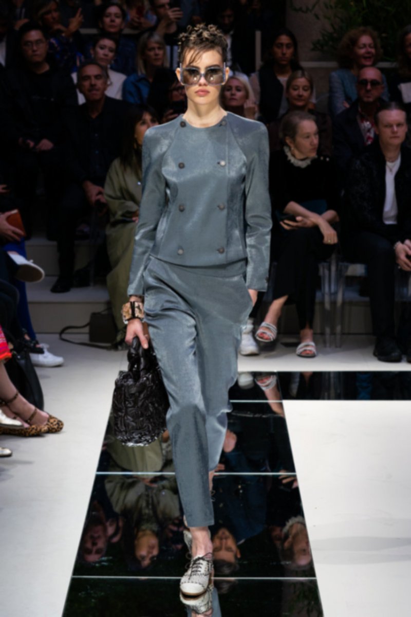تبخترت العارضات على المدارج بتصاميم أحاديّة اللون نذكر منها السترة الرسميّة المزوّدة بصفّين من الأزرار المتماشية مع سراويل ضيّقة من الأسفل والجامبوستات الحريريّة والتنانير المتوسطة الطول. كانت القطع فضفاضة وتكمّلها أحزمة عريضة تغمر خصر العارضات بكلّ أناقة. تزيّنت المجموعة بألوان هادئة واتّسمت برقيّ غير مسبوق - الأمور التي أصبح المصمّم يتقنها أكثر فأكثر مع مرور الوقت.