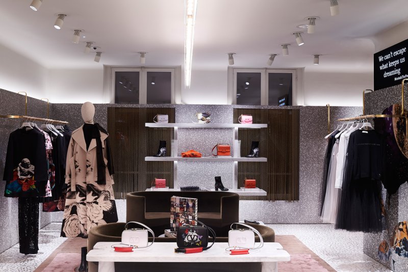تبلغ مساحة البوتيك 545 مترًا مربّعًا وهي تشكّل فصلًا جديدًا في قصّة انتشار فالنتينو في العالم. كما إنّها تبقى وفيّة لمفهوم المتجر الذي طوّرته إدارة الدار الإبداعيّة بمساعدة المهندس المعماريّ البريطانيّ ديفيد تشيبرفيلد.