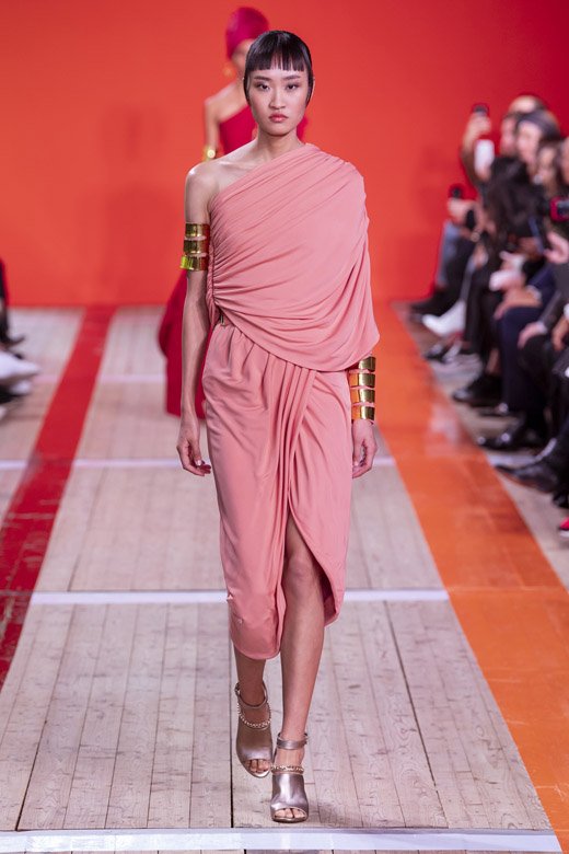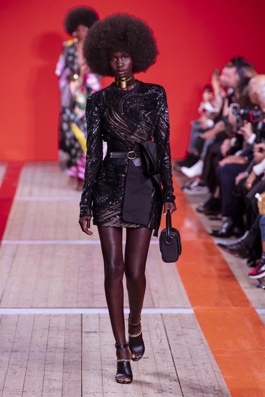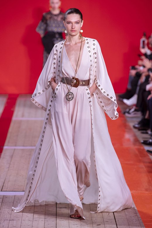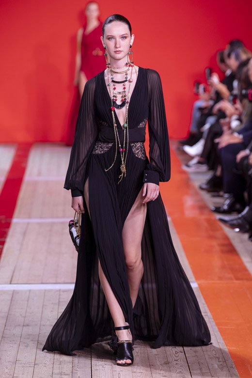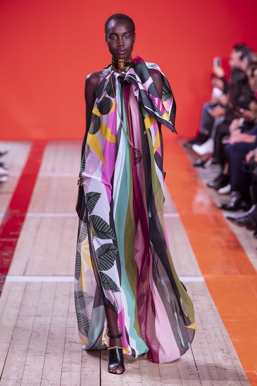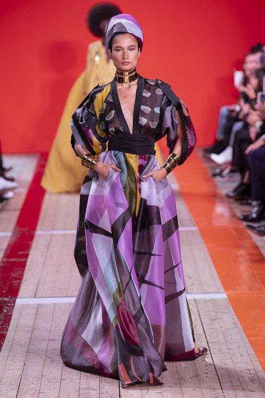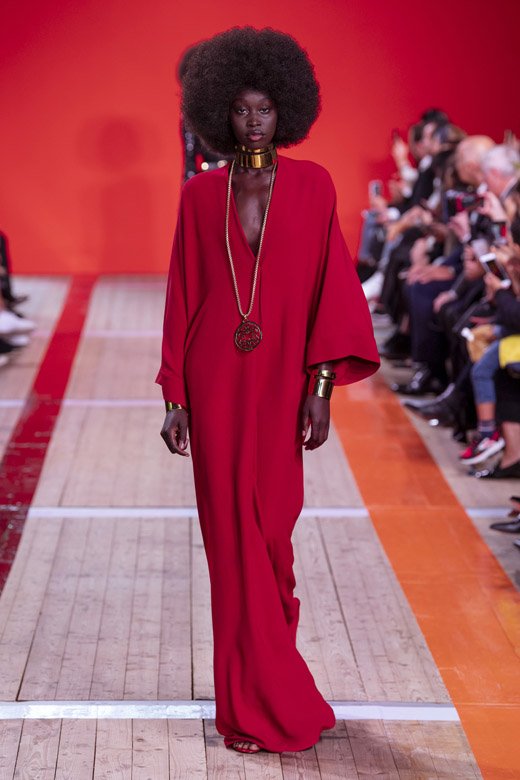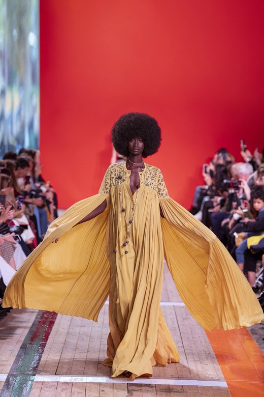 كلّ ما كان إيلي صعب بحاجة إليه لإغناء لائحة إنجازاته هو الموضوع الأفريقي. وهذا بالتّحديد ما قدّمه هذا الموسم! غير أنّه بالطّبع قد أعاد تحديد المعايير والقواعد التي تتّسم بها الدار الحاملة اسمه وجسّدها في التّصاميم إلى جانب تلك اللمسة القبائليّة، مرسلًا عارضات الأزياء بعقود ضيّقة كبيرة ذهبيّة وأساور سميكة زيّنت أذرعهنّ لم تشكّل سوى جزءًا صغيرًا من هذه المجموعة السّاحرة.