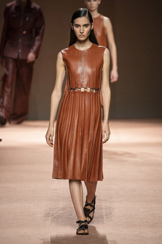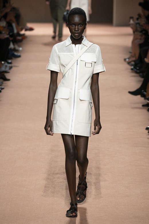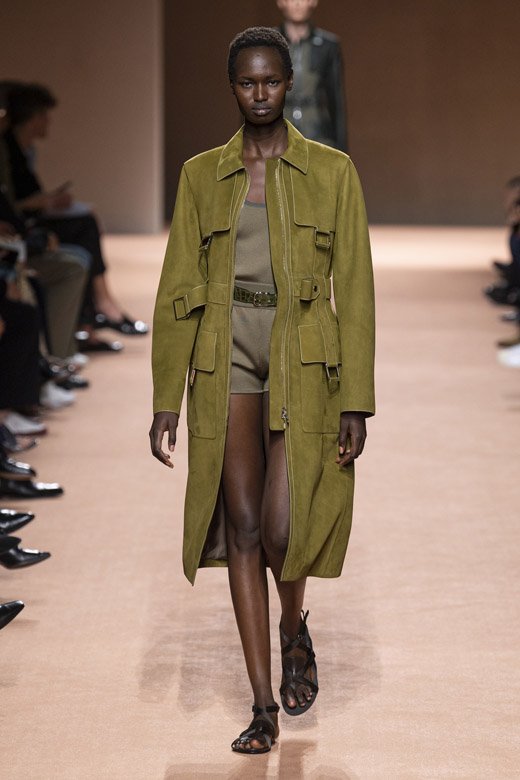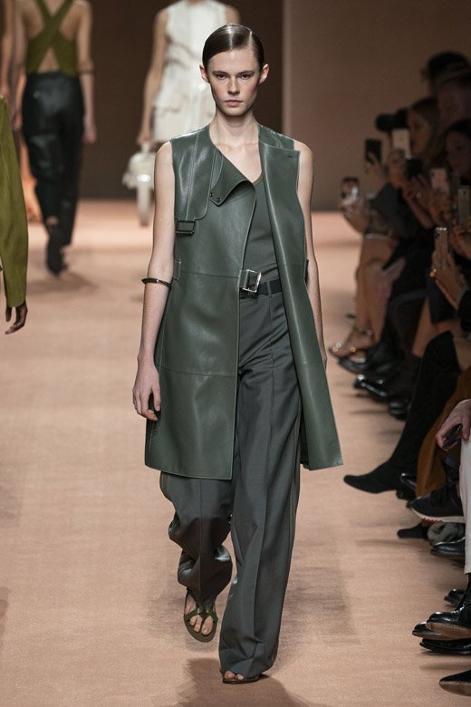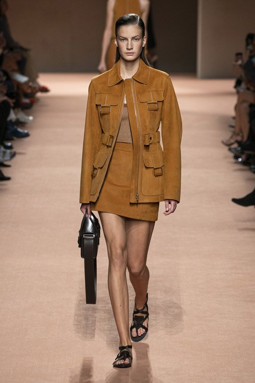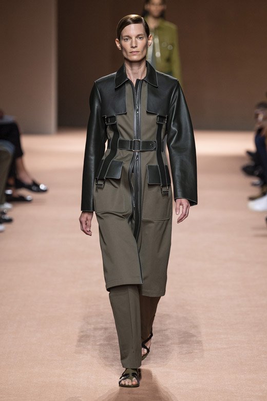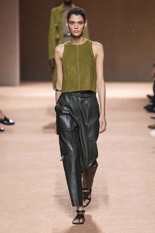 ميّزت التصاميم ذات الخطوط الراقية وصناعة الجلد الحرفية المميّزة مجموعة هيرمس لربيع وصيف 2020 فقد أبدعت ناديج فانهي-سيبولسكي مرّة أخرى! أمّا هدفها فهو المزج بين نظرة الدار الأيقونيّة وعناصرها والقليل من ذلك الأسلوبالباريسيّ العصريّ والبساطة المستخفّ بهما. ويجب القول أنّها حقّقته بامتياز! تمّ تصميم المجموعة من الجلد وقماش السويد اللذان زيّنا قطع مختلفة كالقمصان الواسعة الخفيفة والسراويل والفساتين غير المزوّدة بأكمام والضيّقة من الأعلى والواسعة من الأسفل وسراويل الكارغو المتماشية مع سترات ومعاطف ذات خطوط راقية.