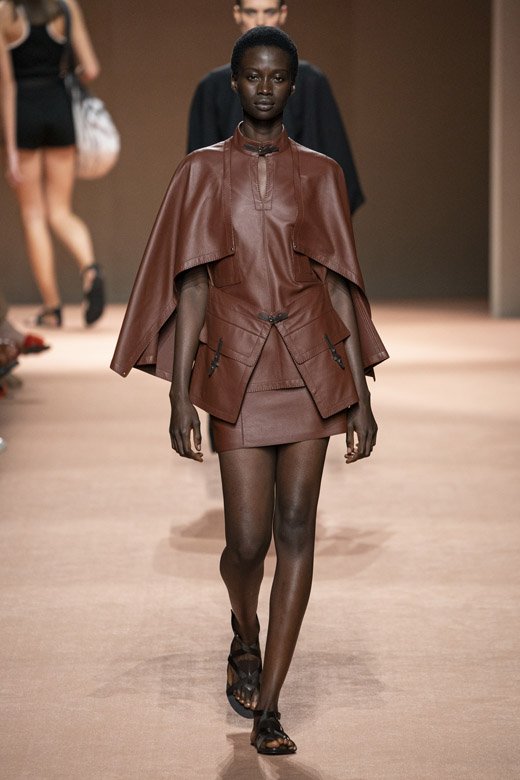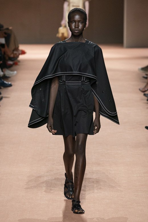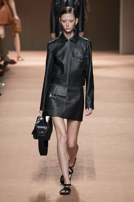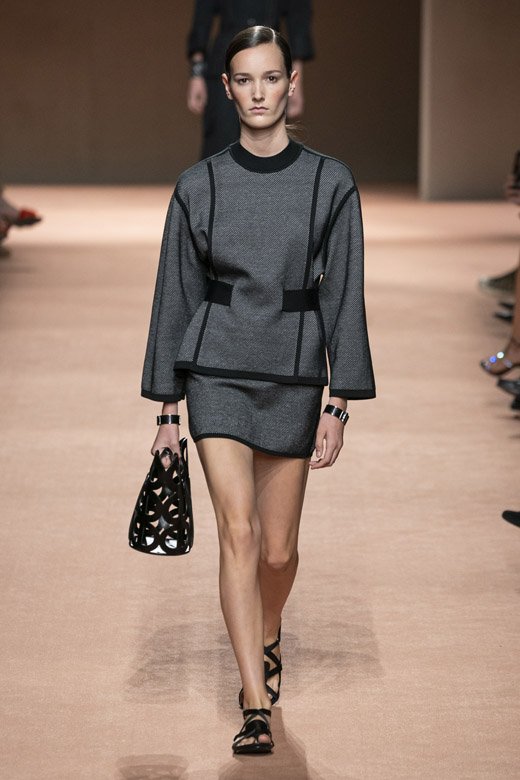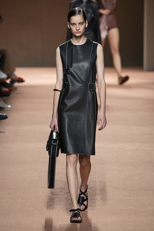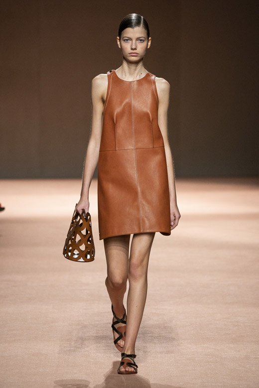 لكن تفصيل معيّن من المجموعة أعطاها معنى جديدًا وهو التّوب المميّزة التي أتت على شكل مئزر. إنّه إحدى التصاميم السهلة التي أضيفت بكلّ أناقة إلى بعض الإطلالات فخطفت أنفاس الجميع. تمّ الجمع بين رقع مستطيلة من خلال تقنيّة خياطة السّرج فكانت الأساس في الصورة الأكبر. أبدعت المصمّمة بما قدّمته لخزانة المرأة المعاصرة من المعاطف الضيّقة إلى الحقائب المتقاطعة مع الجسم التي دمجتها مع تقاليد وقيم هيرمس. أمن أمر أكثر سحرًا؟