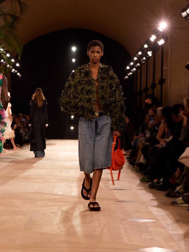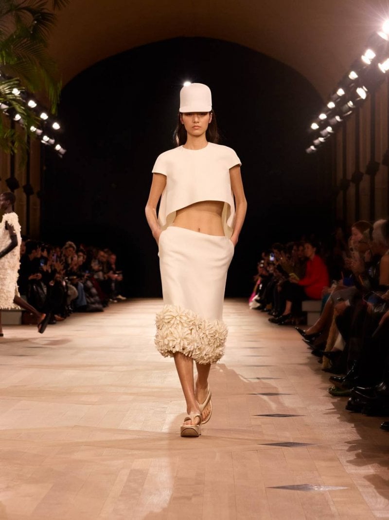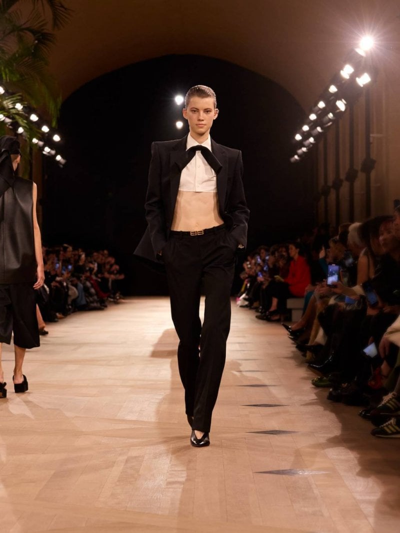 تستكشف المجموعة الفضاء كبُعد ثالث، حيث يصبح الهواء بين الجسد والقماش عنصرًا أساسيًّا. فأُعيد تخيّل الأحجام الأيقونيّة لبالنسياغا من أجل خزانة اليوم – سترات جلديّة وسراويل قطنيّة وقمصان تي شيرت وقطع محبوكة وإكسسوارات، جميعها متحوّلة من خلال القصّة والنسب والنيّة. وتظهر التصاميم النحتيّة من دون هيكل داخليّ، مبتكرة من خلال القماش واللون والشكل فحسب. وأعيد ابتكار عناصر أرشيفيّة مثل قماش الغازار، بينما طرحت تطريزات الزهور والريش من نفس القماش بنية معماريّة بدلًا من الزخرفة. وتعيد التصاميم المحبوكة تفسير الخامات التاريخيّة بلمسة عصريّة.