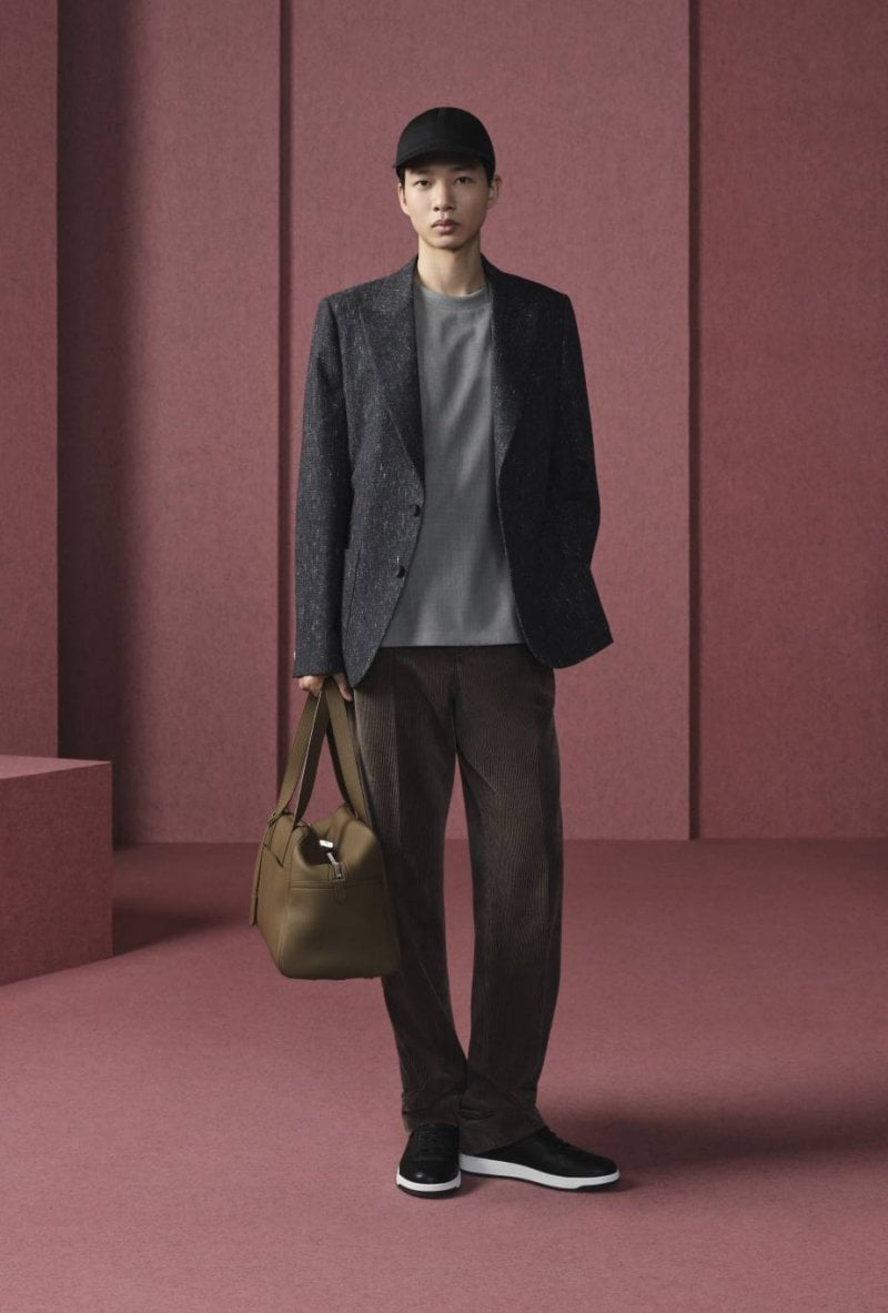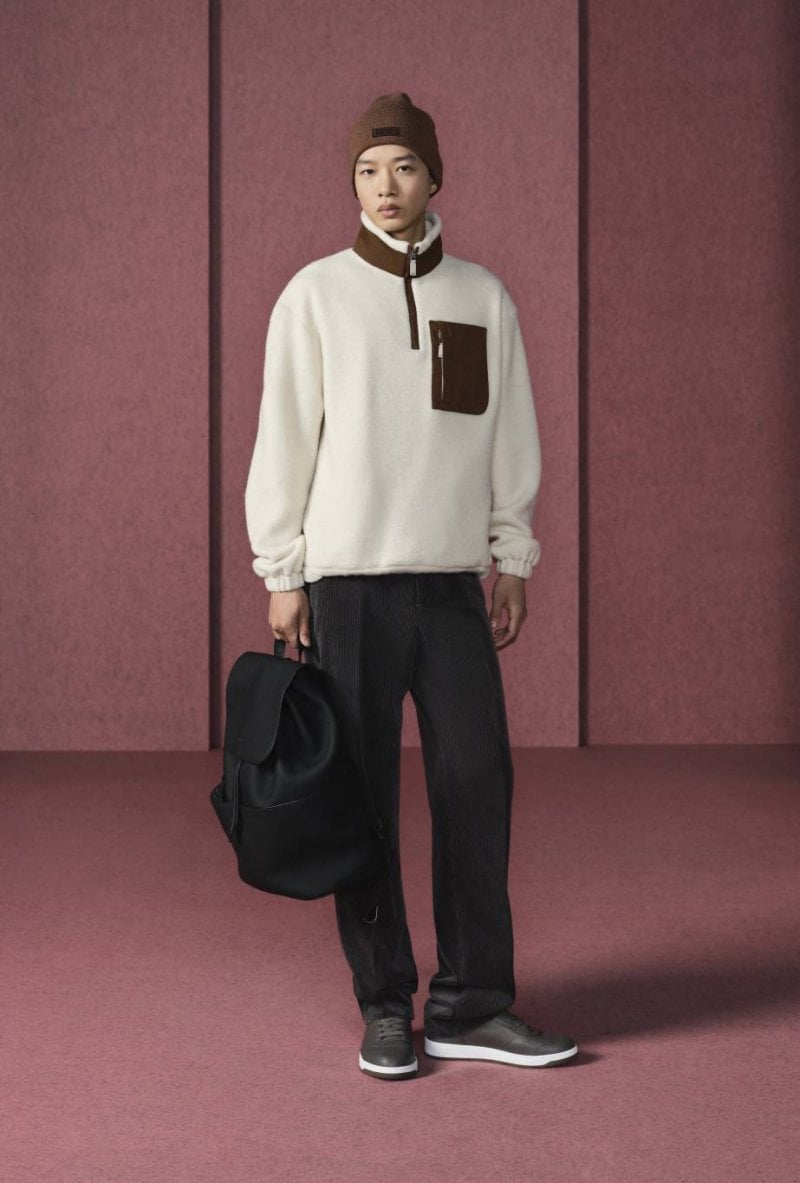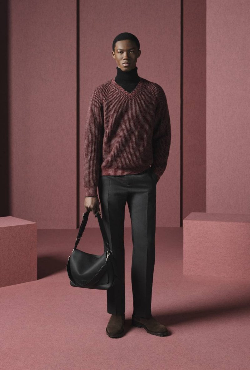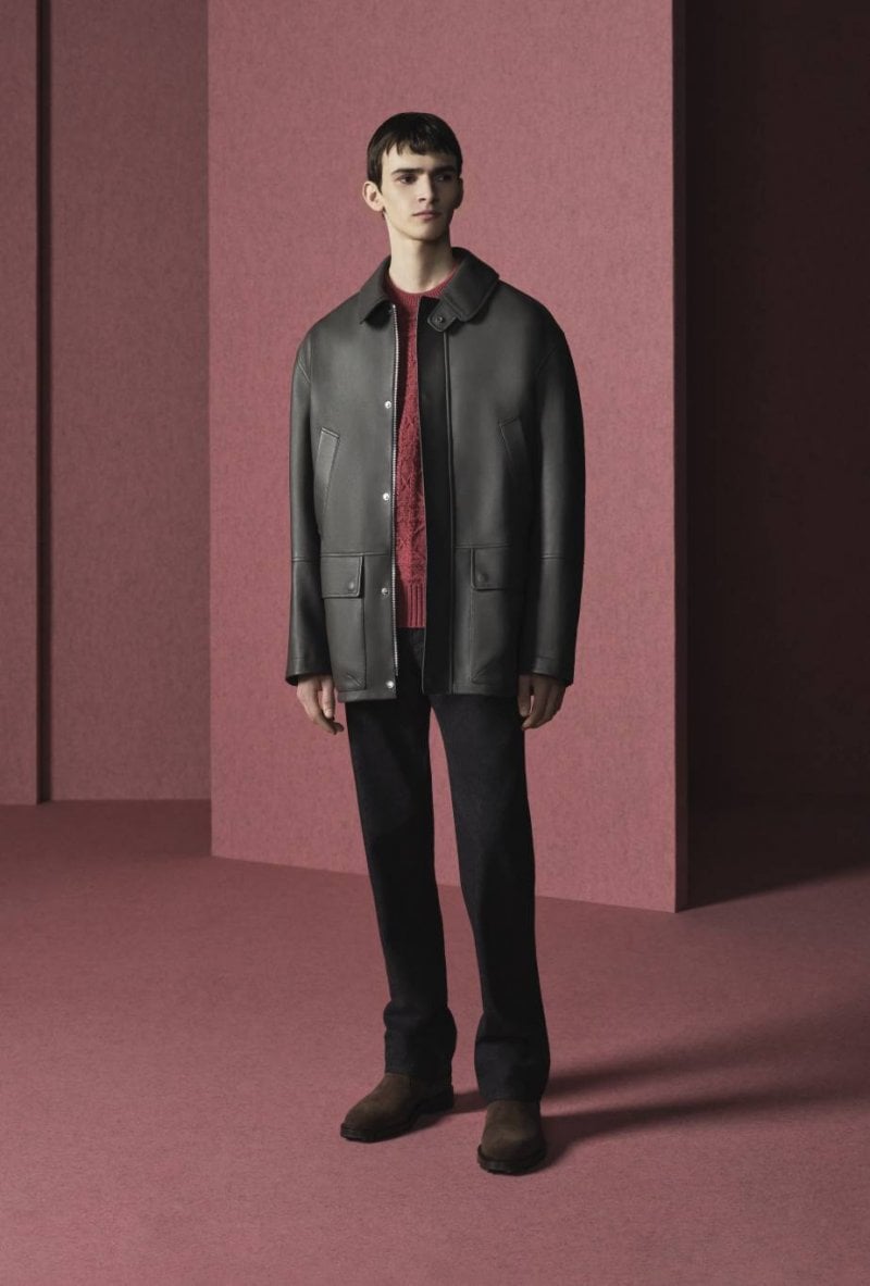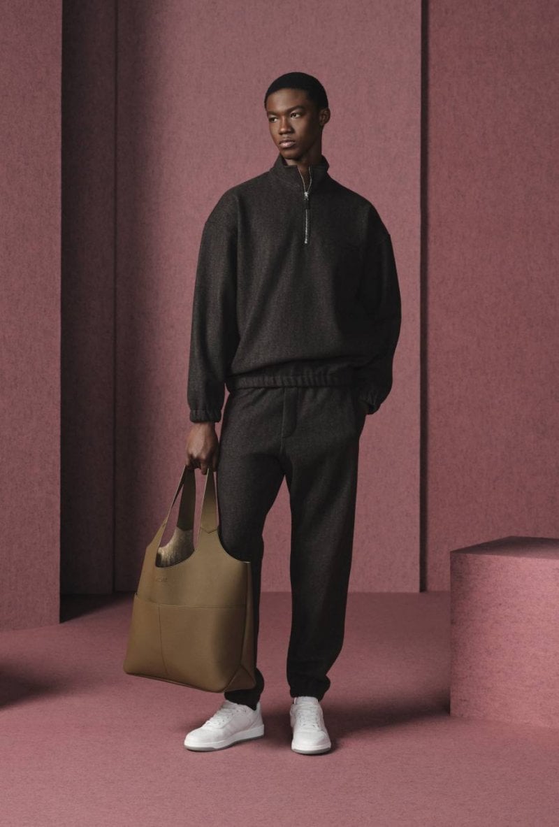 وتتنوّع الألوان بين المرجانيّ والبني والأبيض والرمادي والأزرق، الأمر الذي يبرز نقاء القصّات وأناقتها. أمّا المواد الفاخرة مثل الكشمير والحرير والصوف فترتقي بالتصاميم إلى مستويات غير مسبوقة. وتبرز المجموعة براعة ديور في صناعة المنتجات الجلديّة من خلال تشكيلة Dior Privé التي تتميّز ببطانات من جلد العجل المخمليّ مزدانة بنمط Dior Oblique. ومن القطع اللافتة نذكر حقيبة Dior Normandie، وهي حقيبة ساعي البريد بالأسود أو الرمادي أو لون الكونياك، إلى جانب حقيبة أوراق سوداء أنيقة. أمّا الأحذية فتكمل حكاية الأناقة العصريّة مع أحذية Dior Regency Chelsea العالية المستوى وأحذية ديربي بنعل مزيّن بنمط Cannage، إضافة إلى حذاء B01 Matchpoint الرياضيّ المستوحى من الطراز العتيق.