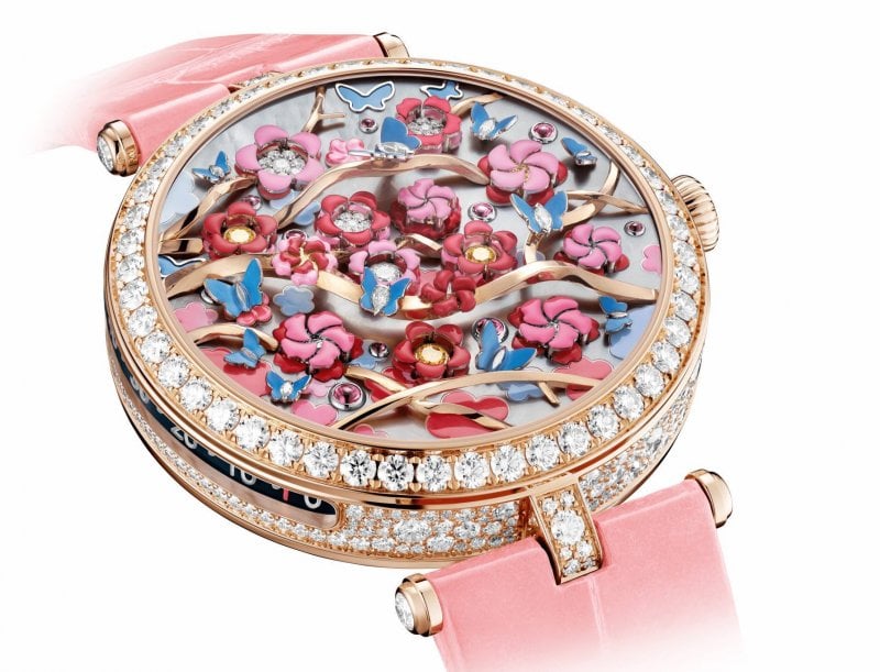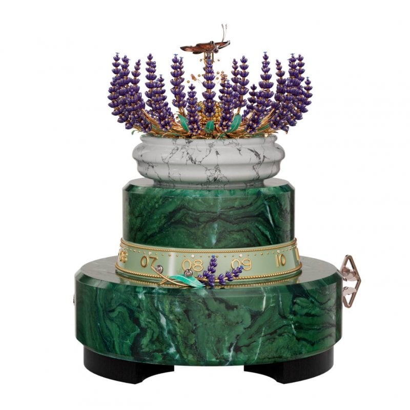 وتُعدّ Brassée de Lavande Automaton، التي جُمعت في مشغل Mécanique d’Art في سانت-كروا، تحيّة لجمال الطبيعة وأناقتها، حيث تجمع بين الحركة والموسيقى والإتقان الفنيّ. ويبلغ ارتفاع هذه التحفة نحو 12 إنشًا، وتتكوّن من ستة وثلاثين غصنًا من اللافندر المطليّ بالذهب الورديّ المصقول لتشكّل قبّة دقيقة. وعند تشغيلها، تتفتّح الباقة لتكشف عن فراشة بأجنحة من المينا البرتقاليّة بتقنيّة بليك أجور مرصّعة بالألماس ومحدّدة بالمينا السوداء. وصُنعت الفراشة من حجر عين النمر والأميتيست، وتتحرّك بخفّة قبل أن تعود إلى قلب الباقة التي تُغلق برفق. أمّا قاعدة هذه القطعة فترتكز على الفيرديت والهوليت، وتتزيّن بحلزونات من الذهب الأبيض المصقول. وتعرض حلقة دوّارة الوقت مع خرزات ذهبيّة ومؤشرات ساعات مرصّعة بالألماس، فيما ترافق الحركة أنغام موسيقيّة متناغمة.