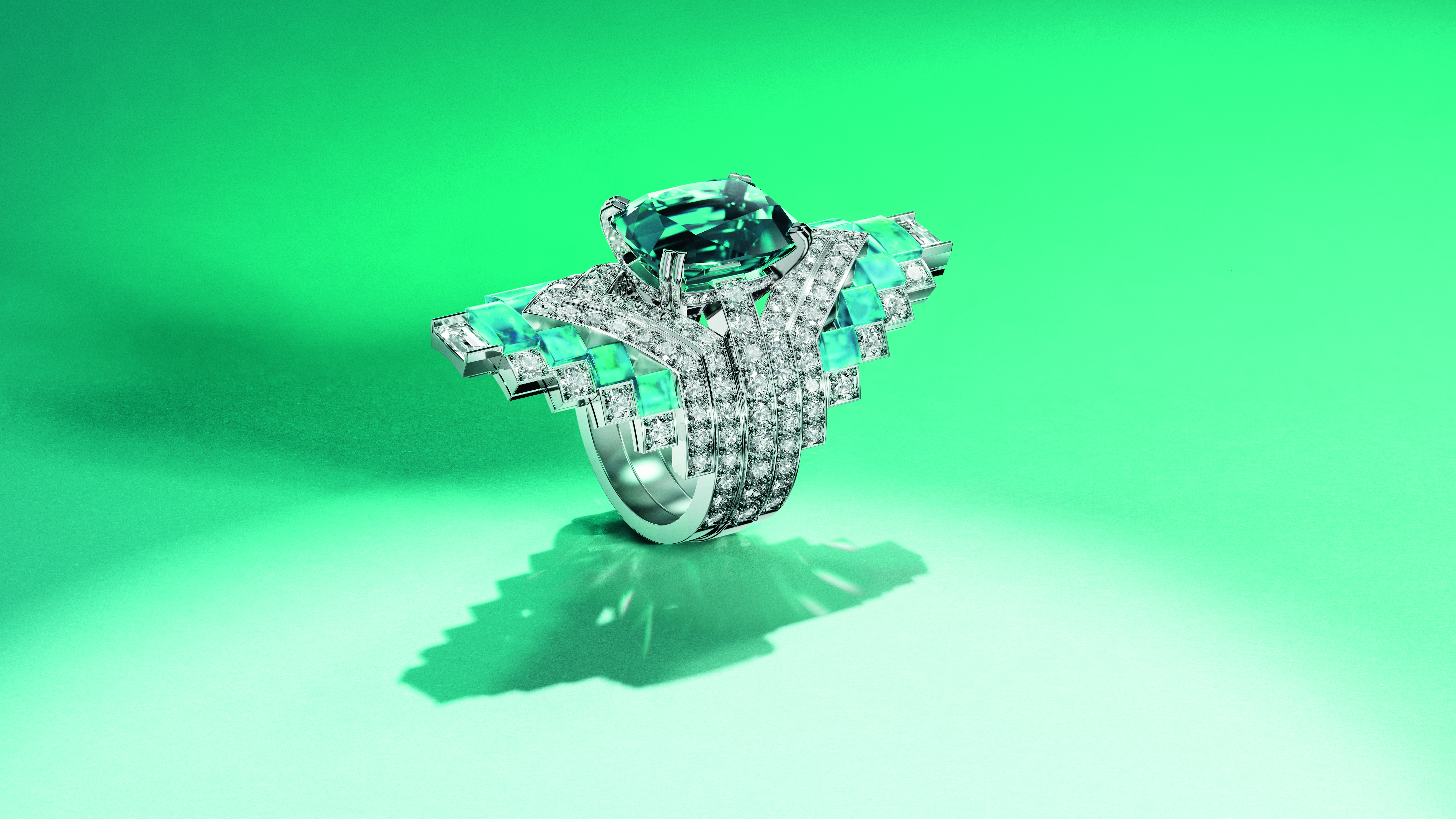 تعكس تشكيلة Bright Vitality خضرة حديقة باليرمو النباتيّة الوافرة، مستعرضةً زمردات كولومبيّة استثنائيّة بتصاميم انسيابيّة مستوحاة من الطبيعة.
