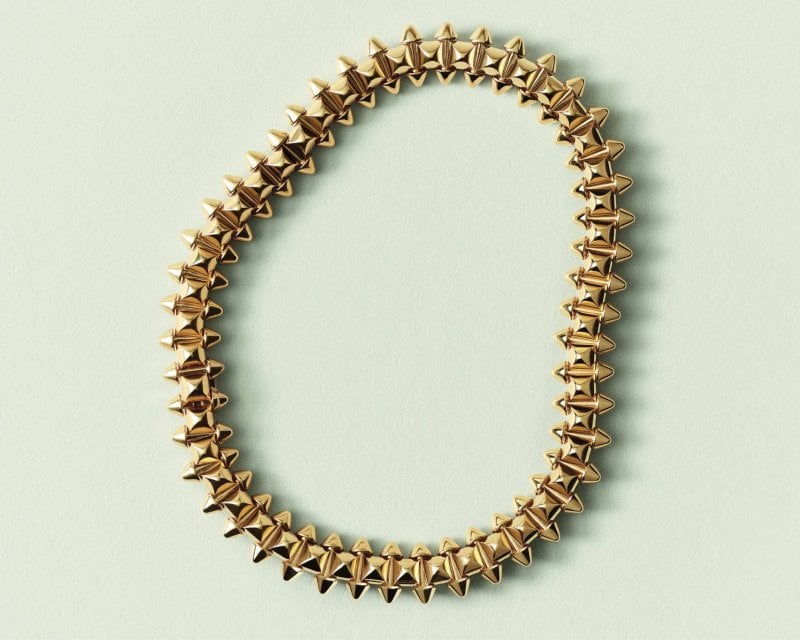 وللمرّة الأولى، يُعاد ابتكار العقود والأساور المرنة بالكامل، التي كانت تُنفّذ سابقًا بالذهب الورديّ، باستخدام الذهب الأصفر. وتعتمد هذه التصاميم اللافتة على خبرتين متكاملتين: تقنيّة الصبّ بالشمع المفقود والتصنيع عالي الدقة، مع تجميع ما يصل إلى 600 عنصر متحرّك مصقول يدويًّا. ويتحرّك كلّ عنصر بحريّة، مولّدًا اهتزازات دقيقة وصوتًا تمّ صقله في خلال مراحل التطوير. وتتوسّع المجموعة من حيث اللون والحجم أيضًا لتشمل العقيق الأحمر والأخضر، والكالسيدوني الورديّ، والأونيكس، إلى جانب تصاميم كبيرة قابلة للتعديل. وتضفي مسامير الأونيكس لمسة راقية على الأساور والعقود والخواتم المرنة، فيما توفّر الأقراط القابلة للتكيّف طرقًا متعدّدة للارتداء.
