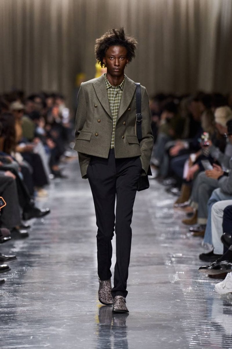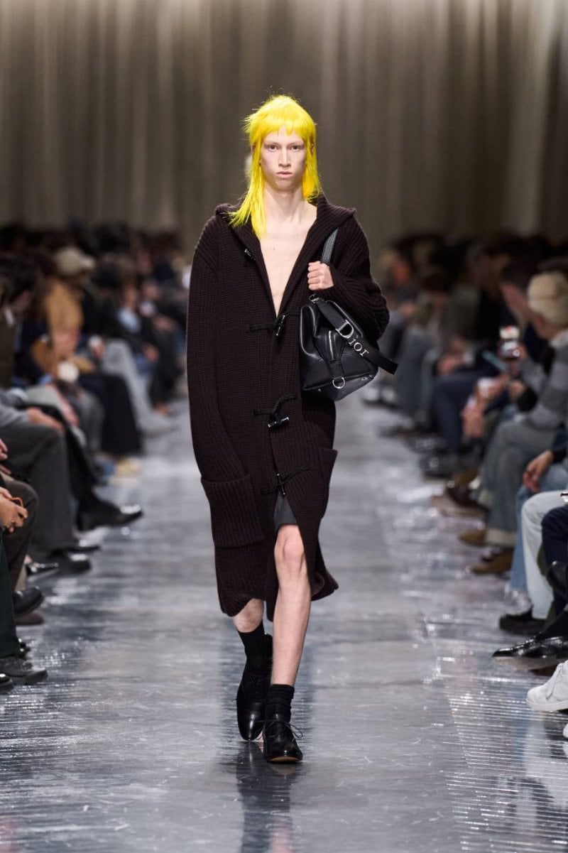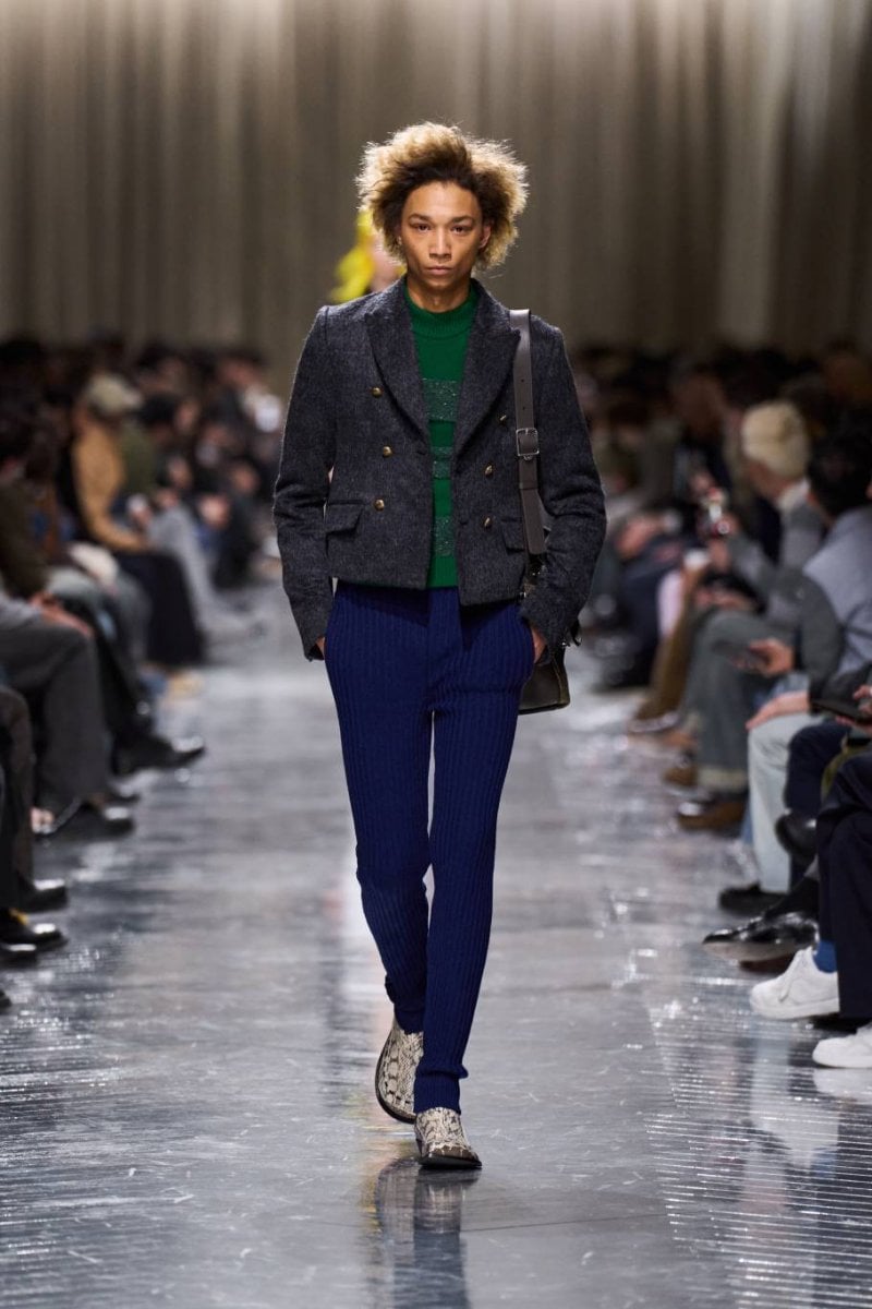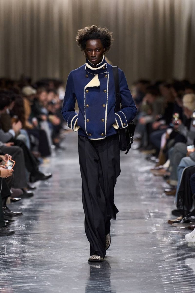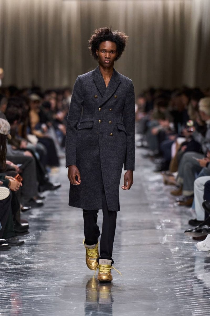 وتُنسج التناقضات معًا: الرموز، وتوقيعات ديور، وأصداء بواريه، والدنيم وسترات الباركا. فتأتي الخياطة رشيقة ودقيقة، تتجسّد في سترات طويلة، وسترات رسميّة صغيرة الحجم، ومعاطف بذيل، وسترات بار قصيرة، وسراويل نحيلة، بينما تمزج الملابس الخارجيّة بين الأداء التقنيّ والثراء. وتتلاشى الحدود بين الأنوثة والذكوريّة، فيما تُضفي أقمشة تويد "دونيغال" والمخمل والجاكارد والتطريزات حيويّة على لوحة لونيّة قاتمة.