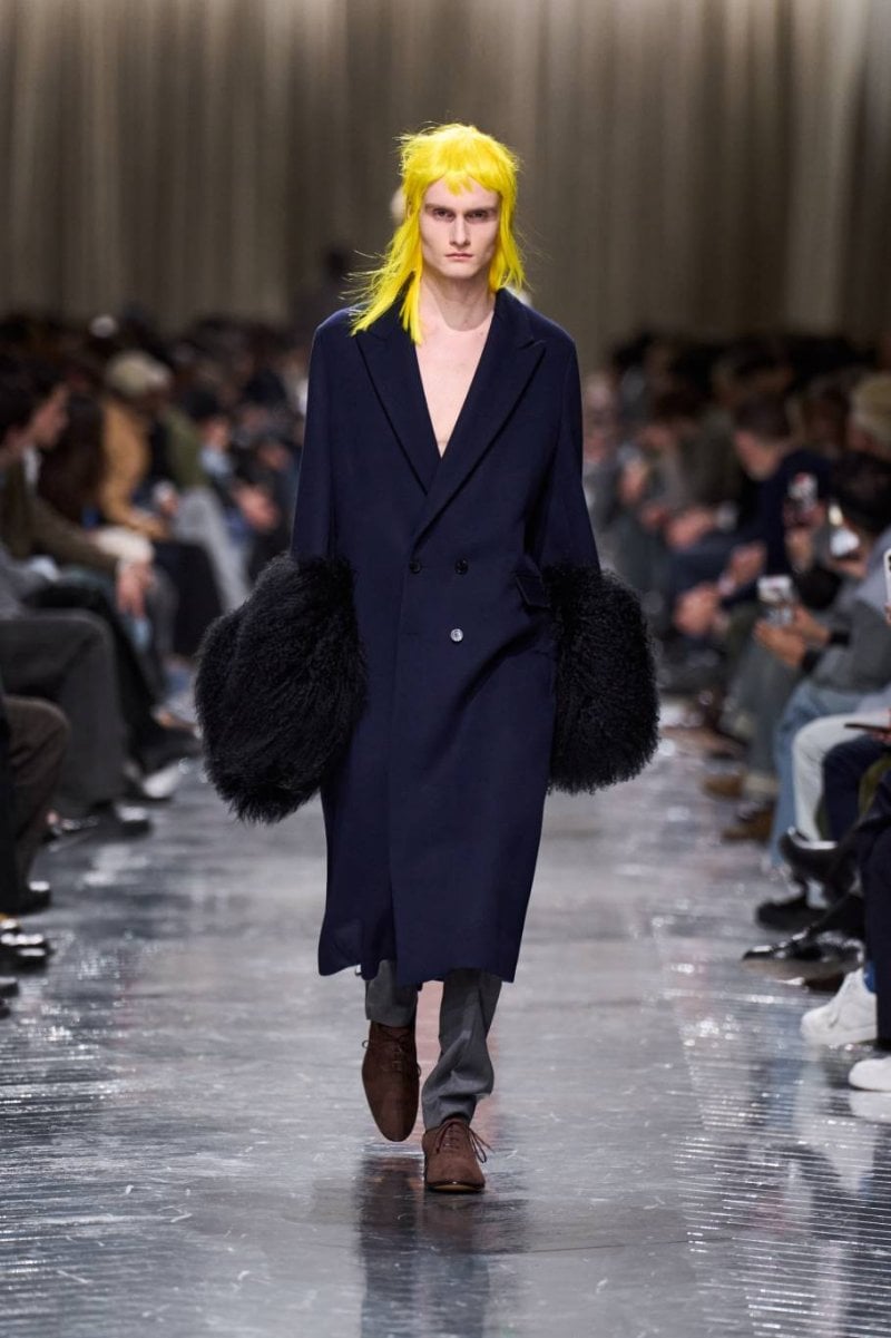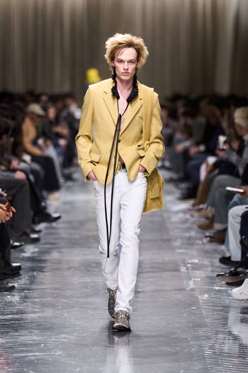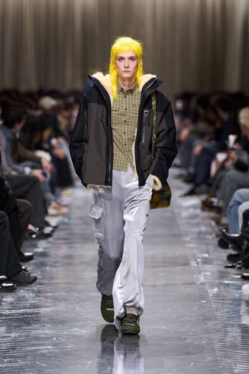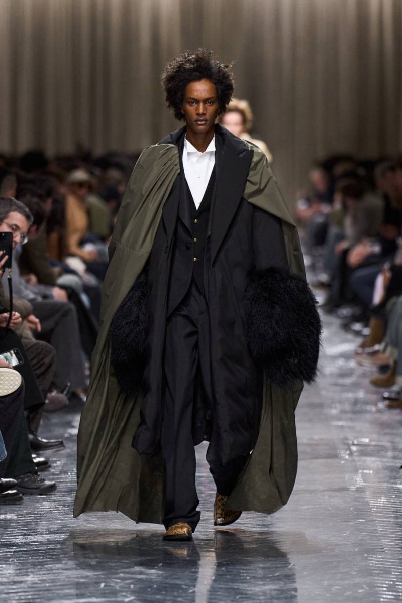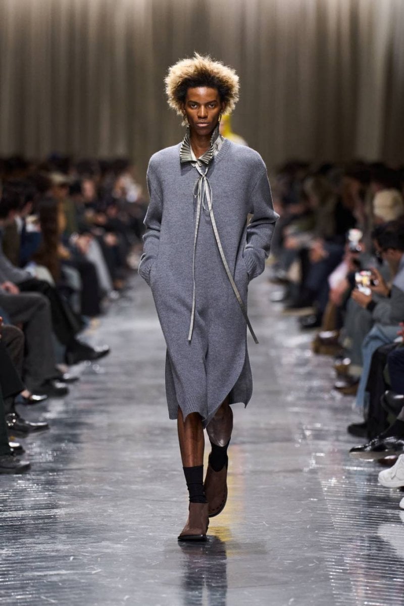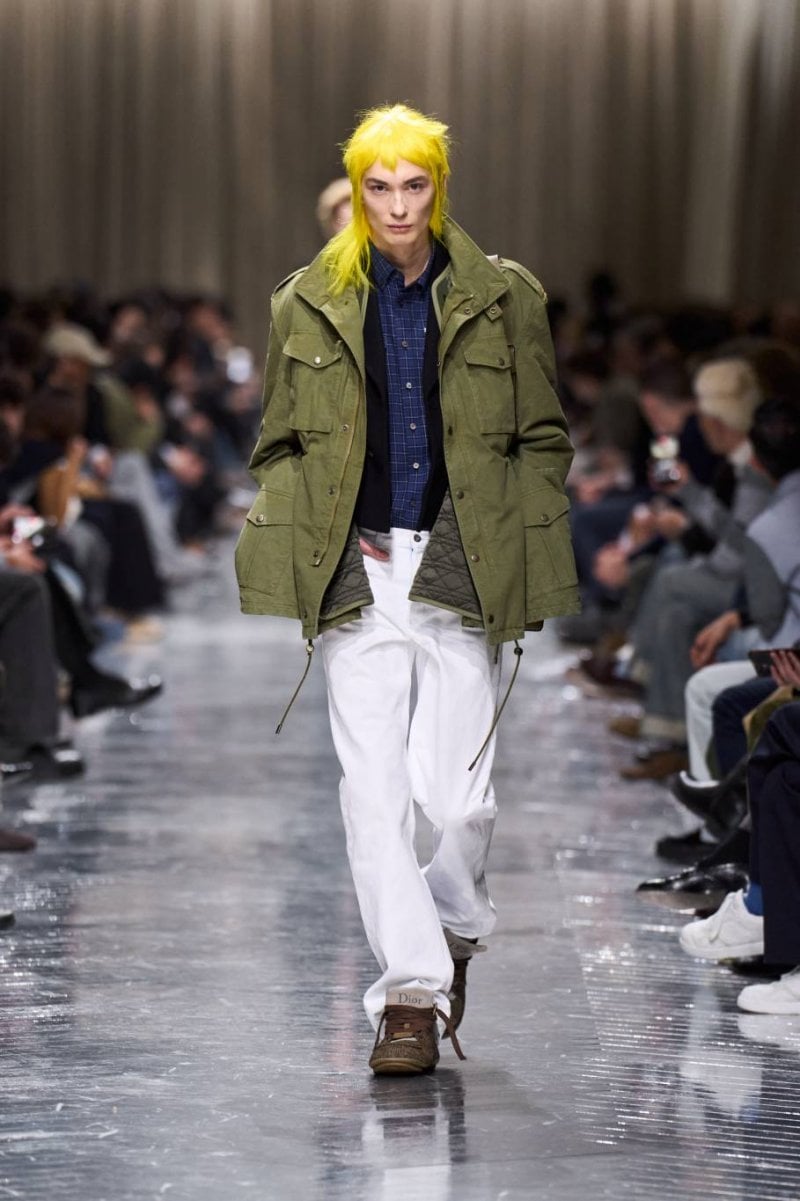 وتُنسج التناقضات معًا: الرموز، وتوقيعات ديور، وأصداء بواريه، والدنيم وسترات الباركا. فتأتي الخياطة رشيقة ودقيقة، تتجسّد في سترات طويلة، وسترات رسميّة صغيرة الحجم، ومعاطف بذيل، وسترات بار قصيرة، وسراويل نحيلة، بينما تمزج الملابس الخارجيّة بين الأداء التقنيّ والثراء. وتتلاشى الحدود بين الأنوثة والذكوريّة، فيما تُضفي أقمشة تويد "دونيغال" والمخمل والجاكارد والتطريزات حيويّة على لوحة لونيّة قاتمة.