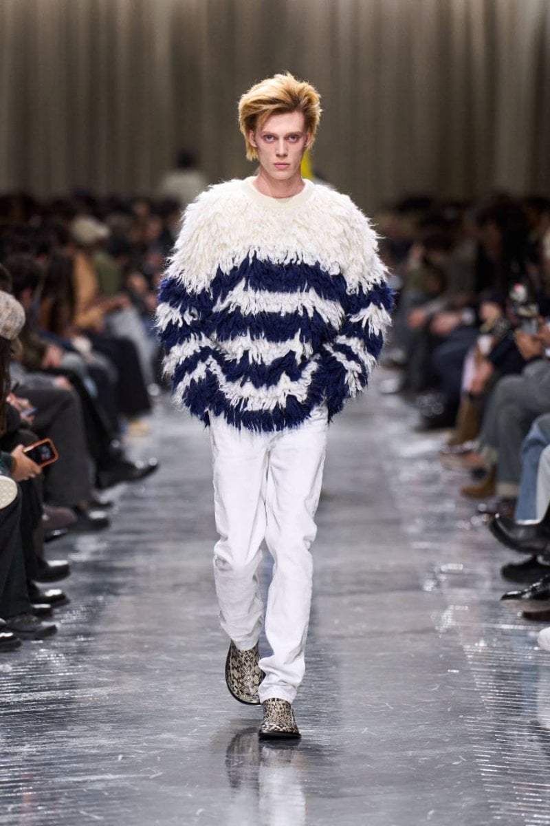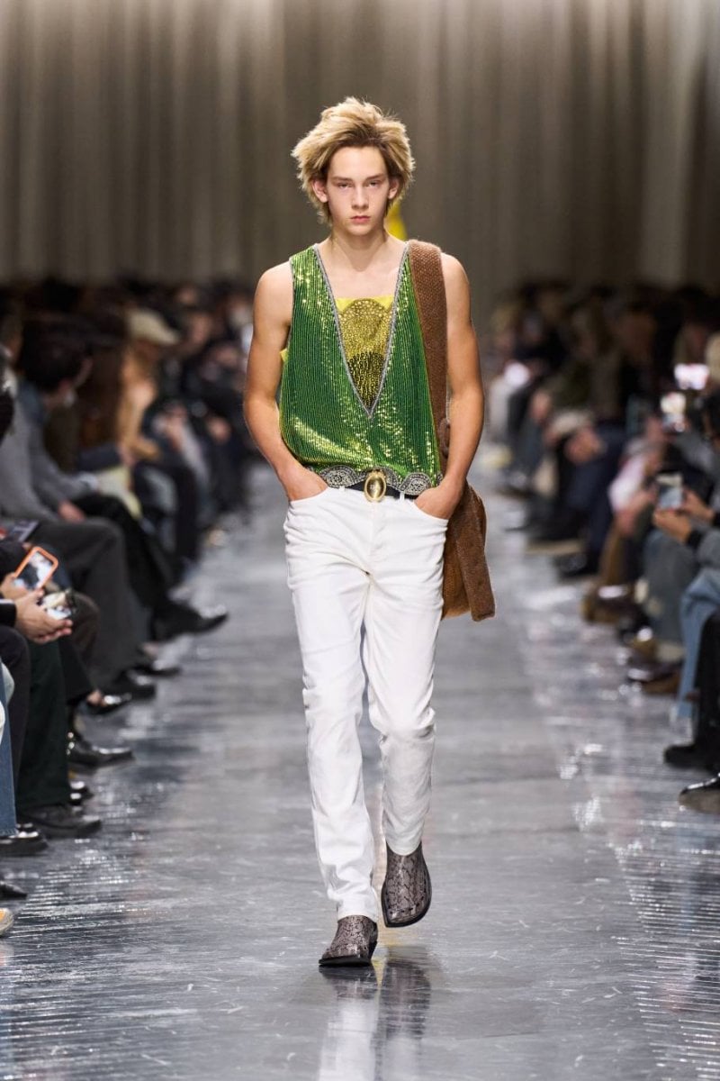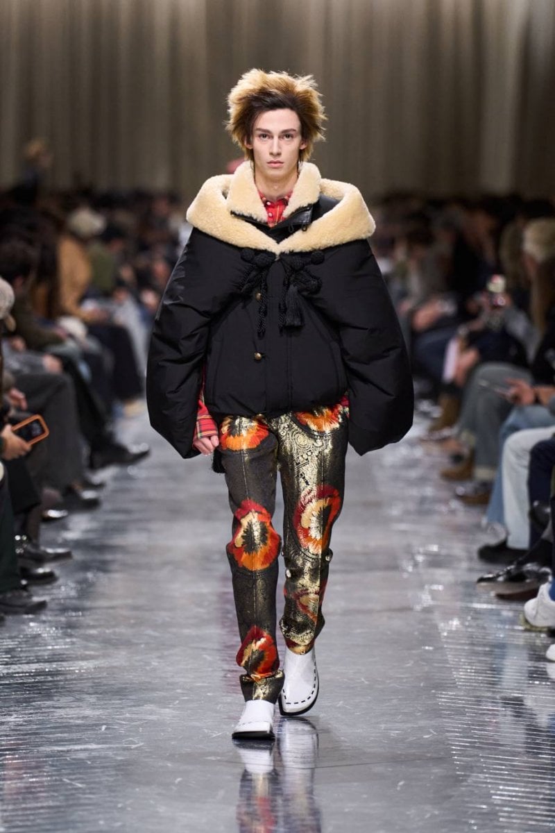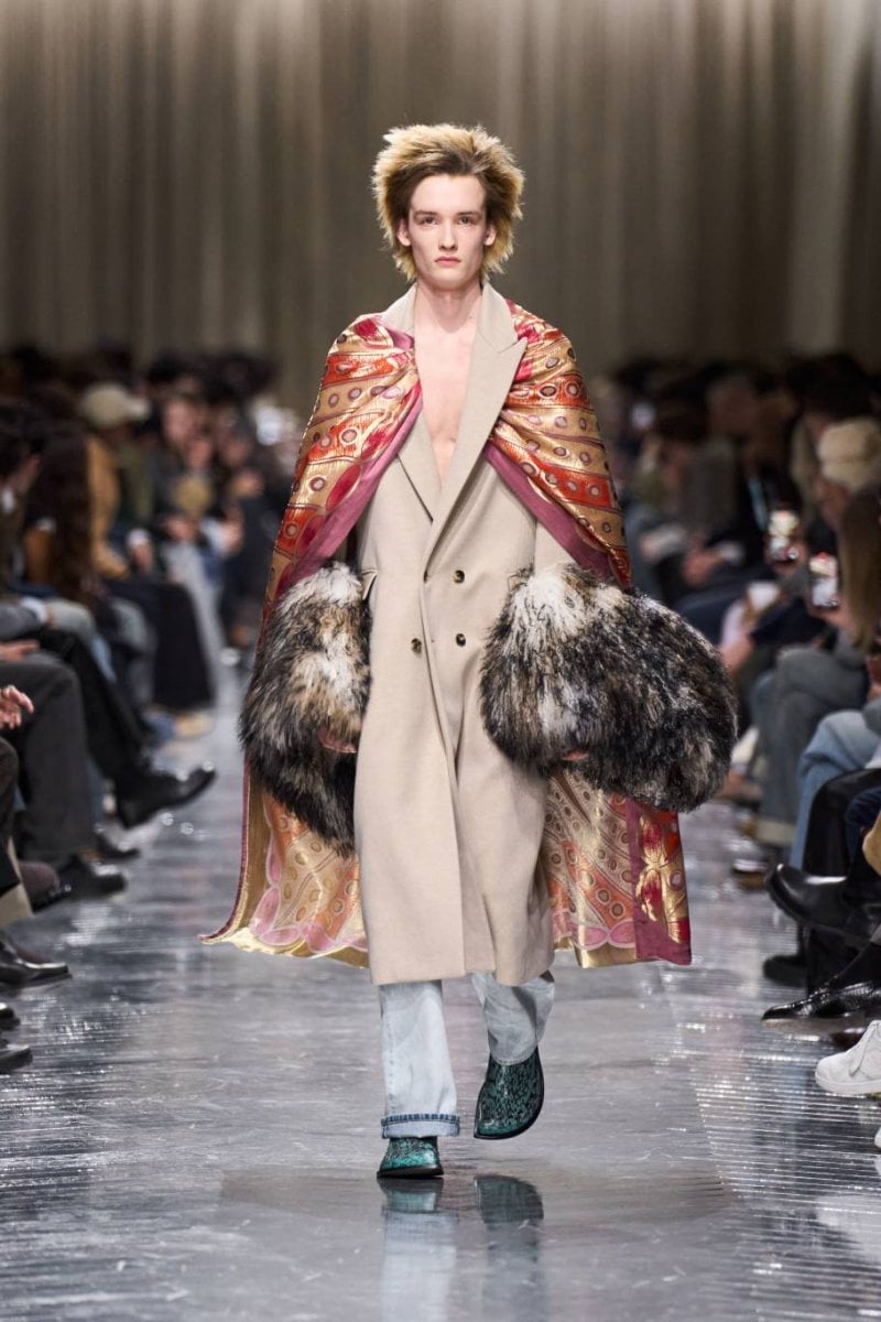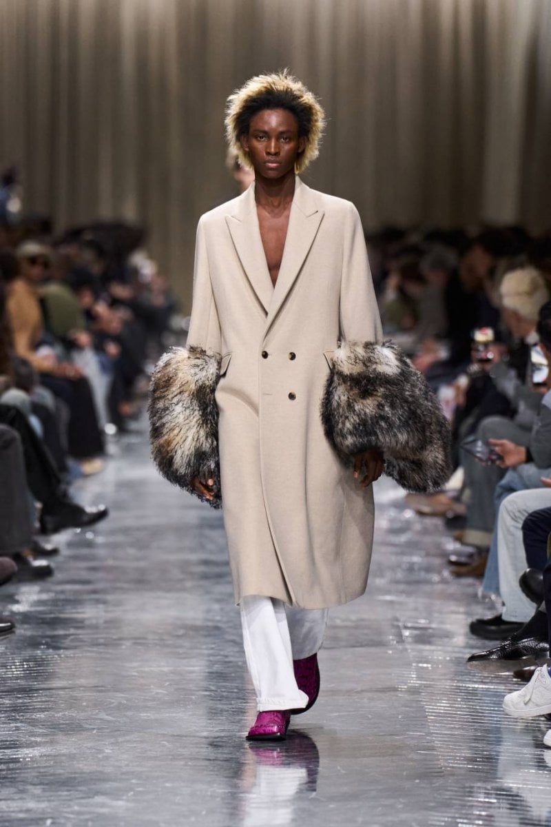 وتُنسج التناقضات معًا: الرموز، وتوقيعات ديور، وأصداء بواريه، والدنيم وسترات الباركا. فتأتي الخياطة رشيقة ودقيقة، تتجسّد في سترات طويلة، وسترات رسميّة صغيرة الحجم، ومعاطف بذيل، وسترات بار قصيرة، وسراويل نحيلة، بينما تمزج الملابس الخارجيّة بين الأداء التقنيّ والثراء. وتتلاشى الحدود بين الأنوثة والذكوريّة، فيما تُضفي أقمشة تويد "دونيغال" والمخمل والجاكارد والتطريزات حيويّة على لوحة لونيّة قاتمة.