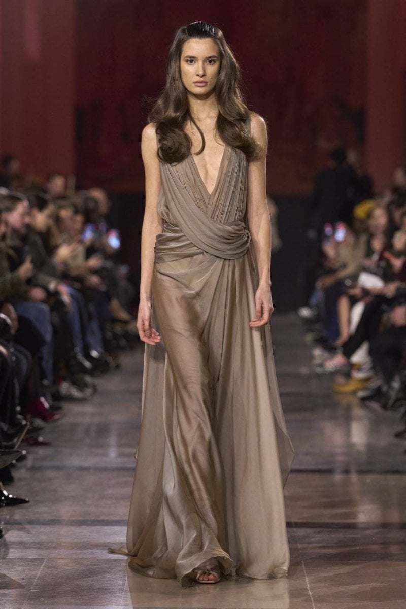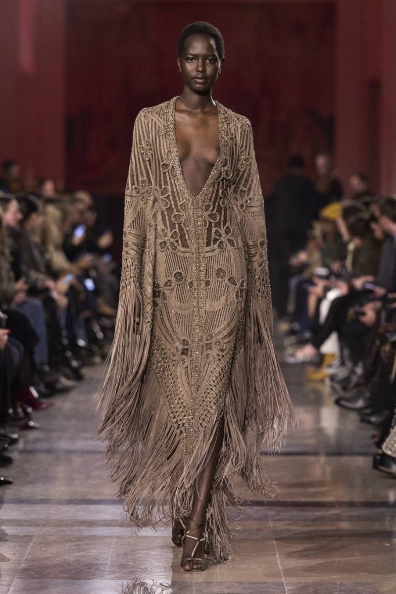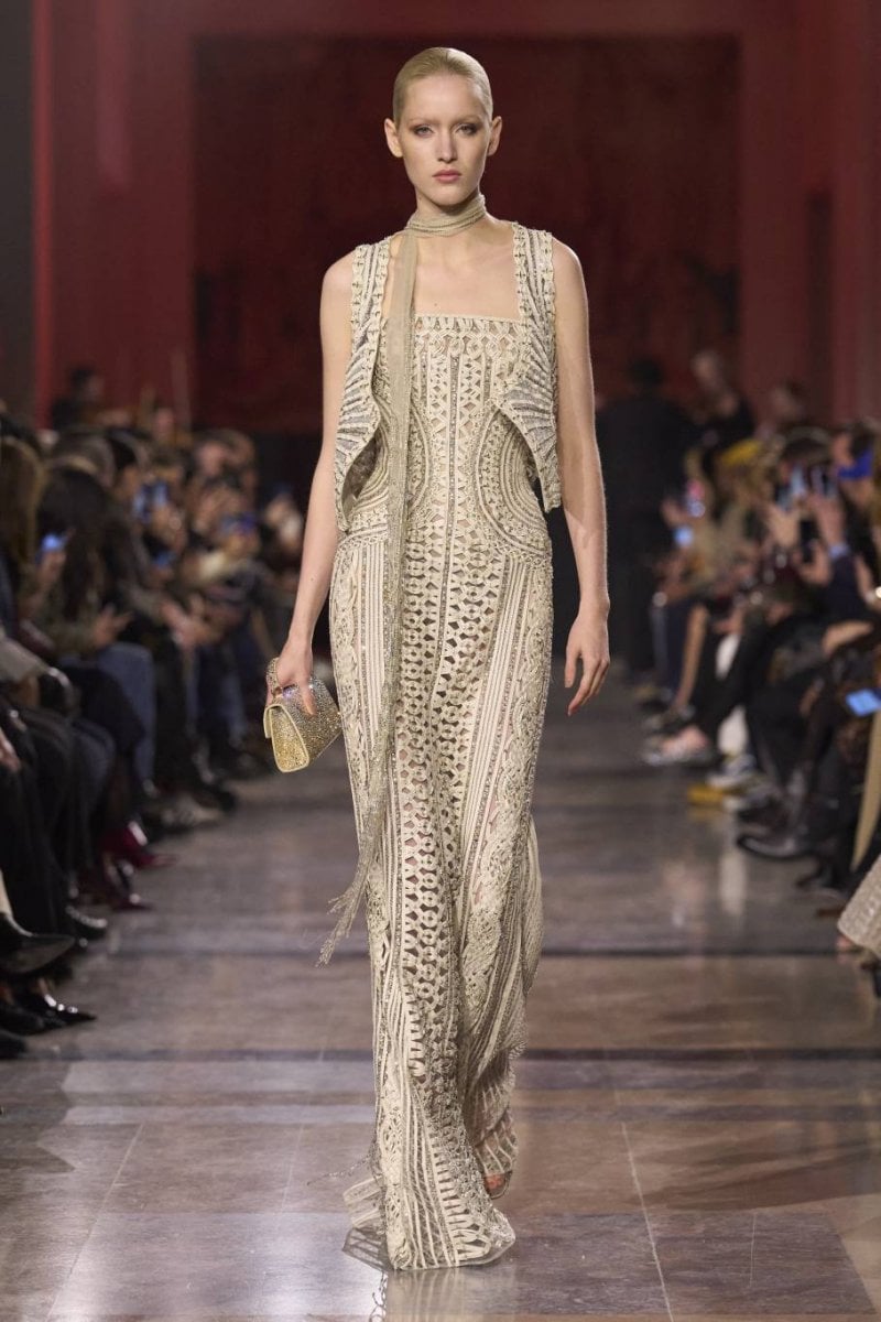 ويتصدّر التعبير عن الذات كلّ إطلالة: فيُرتدى الجلد كأنّه مجوهرات، وتتلاقى الخامات المنسوجة مع الطبعات التجريديّة، فيما تتلألأ النقوش العرقيّة بالكريستالات المتدفّقة مع امتزاج الفضة بالذهب. وتفاجئ التفاصيل غير المتوقّعة، من الظهر المكشوف مع الحركة إلى الأحزمة المطرّزة التي تزيّن البشرة الظاهرة.