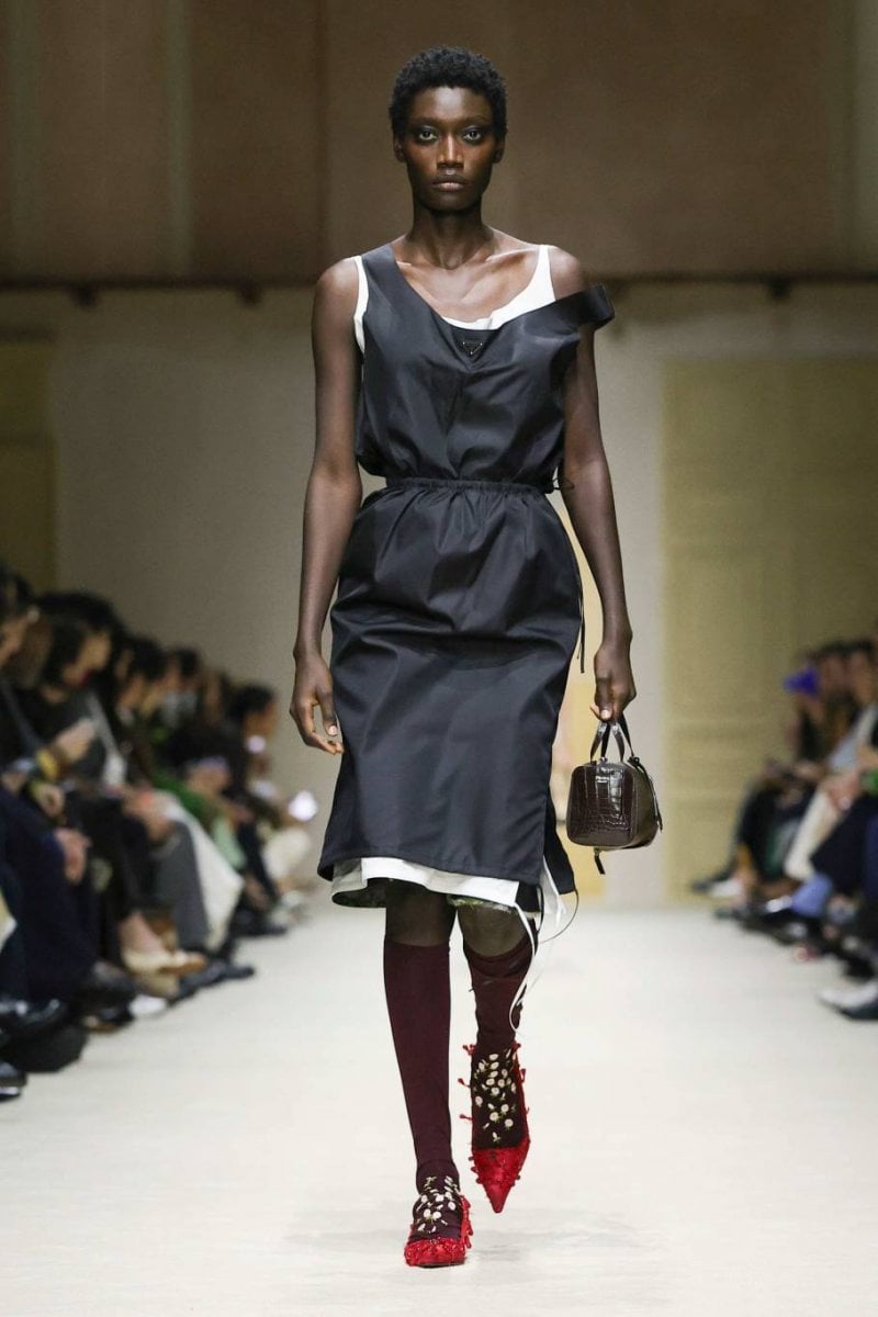 في عرض برادا للأزياء النسائيّة لخريف وشتاء 2026، استكشفت ميوشيا برادا وراف سيمونز قوّة تعدّد الطبقات بوصفه فعلًا جسديًّا واستعارةً للواقع المتعدّد الأوجه في حياة النساء. وتحت عنوان Inside Prada، تعكس المجموعة فكرة التحوّل في خلال اليوم، من خلال ملابس تكشف عن عوالم متعدّدة داخل كل إطلالة. وأُقيم العرض في مستودع مؤسّسة برادا، وسط أعمال فنيّة وقطع أثاث تمتدّ عبر خمسة قرون، ليعكس المكان فكرة المجموعة: طبقات من التاريخ والذاكرة والهويّة، تنكشف تدريجيًّا قطعةً بعد الأخرى.