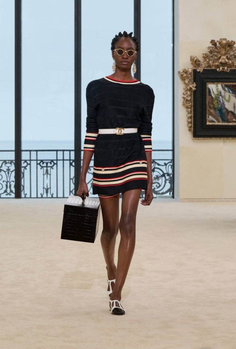 كما يعيد بلازي تقديم فستان شانيل CHANEL الأسود من عام 1926، الذي يظهر كإطلالة افتتاحيّة وعنصر أساسيّ في المجموعة. فكان هذا التصميم في زمنه ثوريًّا، إذ تحدّى قواعد الهوت كوتور، وببساطته موّه الفوارق الطبقيّة وأعاد تعريف الأناقة. واليوم، وبعد إعادة تقديمه انطلاقًا من الرسم الأصليّ، لا يزال رمزًا للتحرّر.
