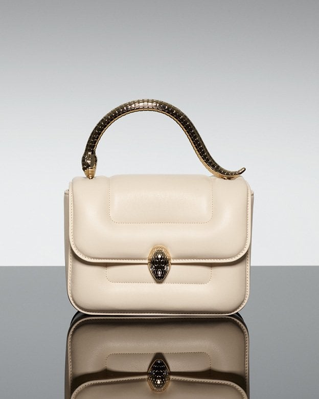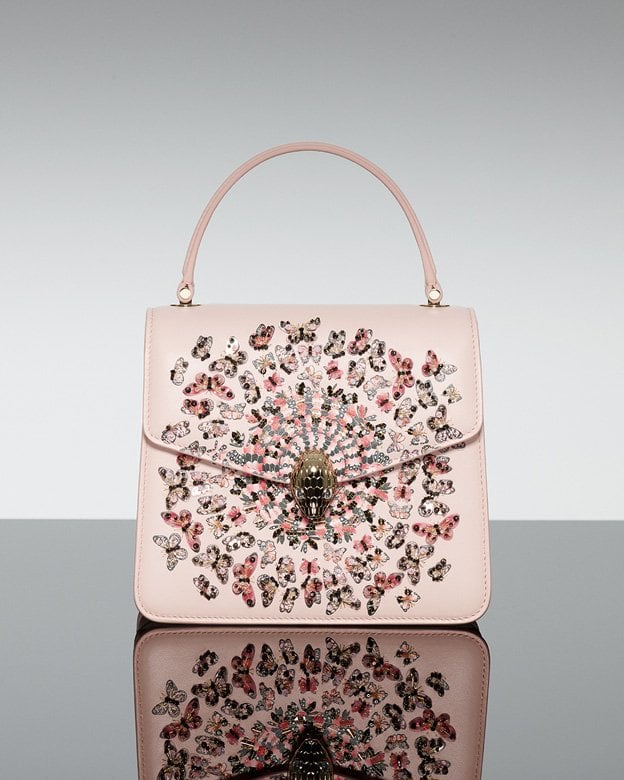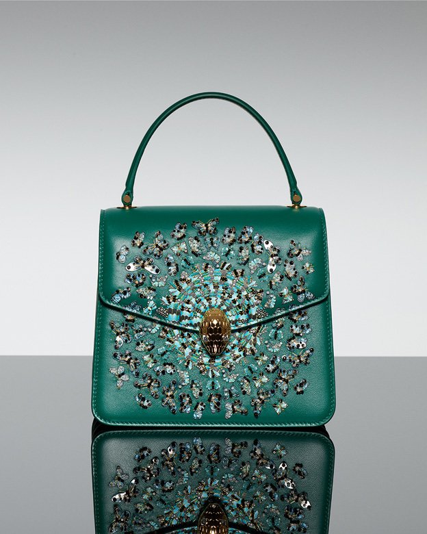 Recognized as the “Queen of prints”, Katrantzou certainly didn’t fail to infuse the Serpenti icon with her poetic and jubilant style. Haute Couture craftsmanship meets vibrant nuances and playful jewelry-inspired touches in three new styles the fashion designer introduces into the world of the Roman jeweler. From the Serpenti Metamorphosis bag to the Serpenti Metamorphosis Handle bag and the Serpenti Metamorphosis minaudière, the snake’s transformative nature, as well as the metamorphosis of butterflies, are embodied in a selection of textiles. The message behind all this is clearly optimistic; it’s one of rebirth, evolution and change.