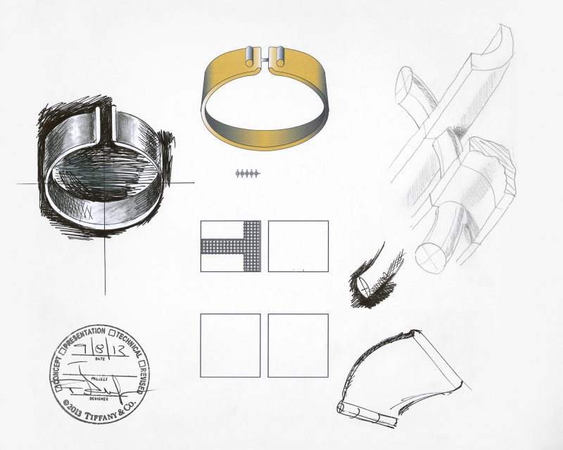 Graphics reminiscent of last century’s 20s, found in Tiffany’s archives, were also a source of inspiration, more specifically for some of the diamond-set pieces. “These graphics show the diamonds that were set in an energetic, pure and flawless way, adding to it a touch of modernity recognizable from the first sight,” said Amfitheatrof.