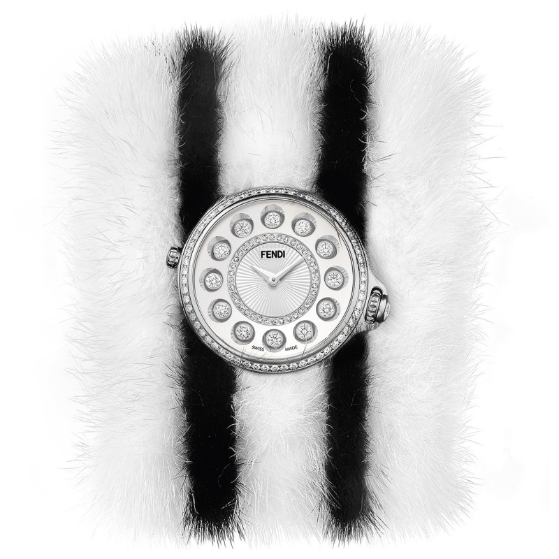The newest edition of Fendi’s Crazy Carats is more luxurious than ever. The bracelet features striped monochrome mink crafted by Fendi’s distinguished atelier that sits atop alligator leather while a shimmering display of diamonds and pastel sapphires adorn each Swiss-made timepiece. With only 50 pieces produced - each inscribed with its own number and a signed note by Fendi’s accessories designer Silvia Venturini Fendi - this limited edition masterpiece will be hard to come by.