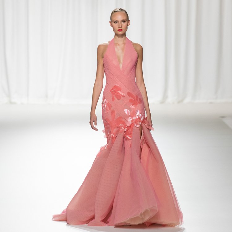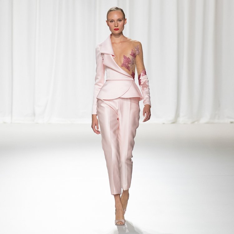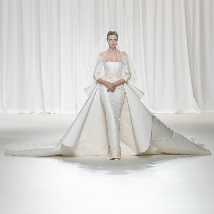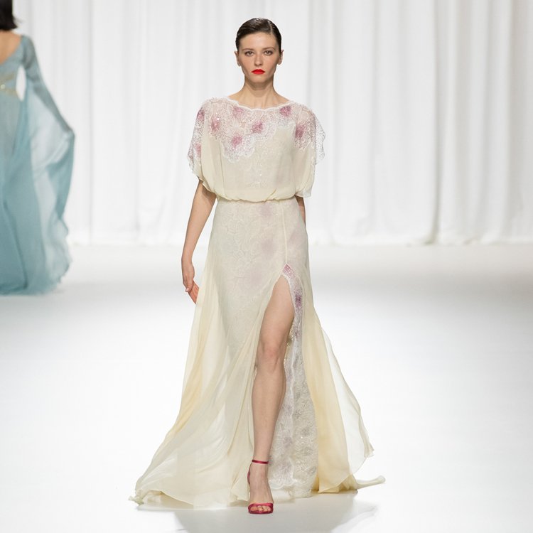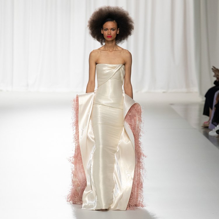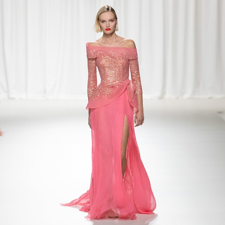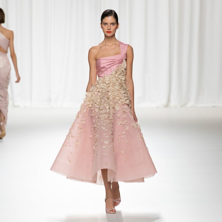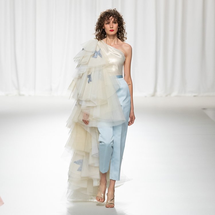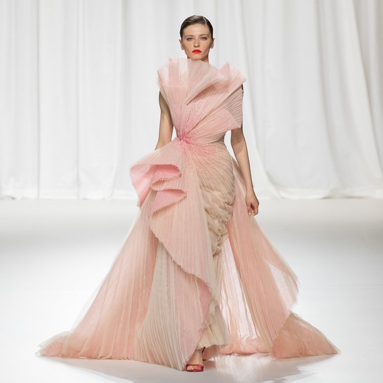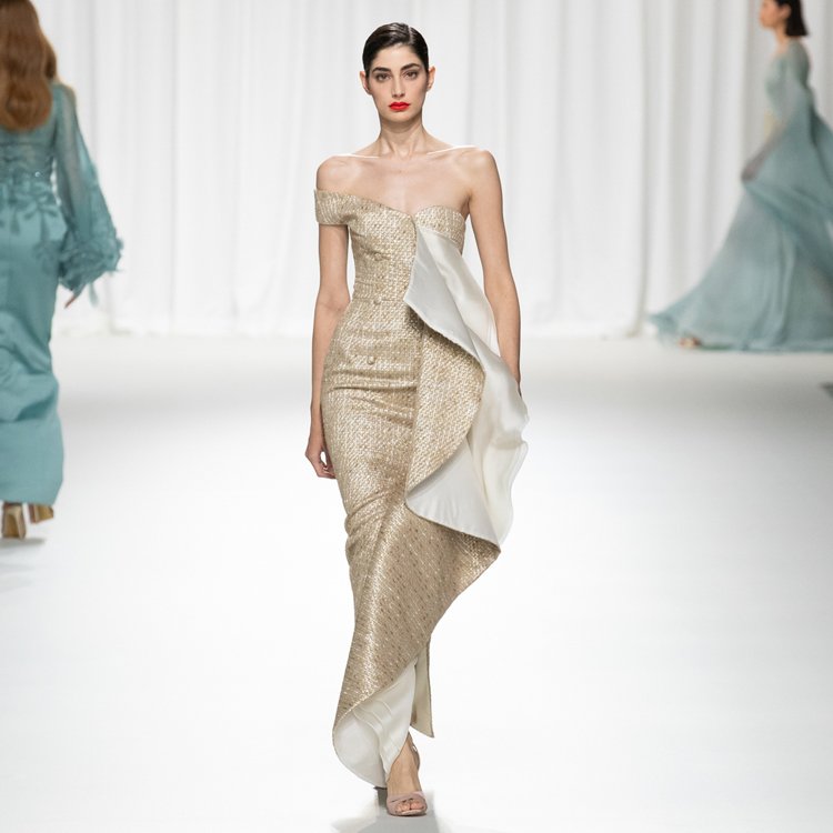 The exquisite collection revolved around striking sculptural shapes, dynamic layering, flowing lines and impeccable workmanship in a style that is faithful to the fashion house’s design codes. With this in mind, the runway witnessed voluminous multi-layered skirts, tea-length mini-dresses and sharply tailored jumpsuits that redefine contemporary femininity. Delicate fabrics such as taffeta, satin and double-faced silks mingled with soft silk muslin, tulles and tweed to create the perfect balance, while a wonderful color palette of teal, sky blue and raspberry hues was effortlessly complemented with blush pink, ivory and champagne beige to evoke a sophisticated sensibility and depth.