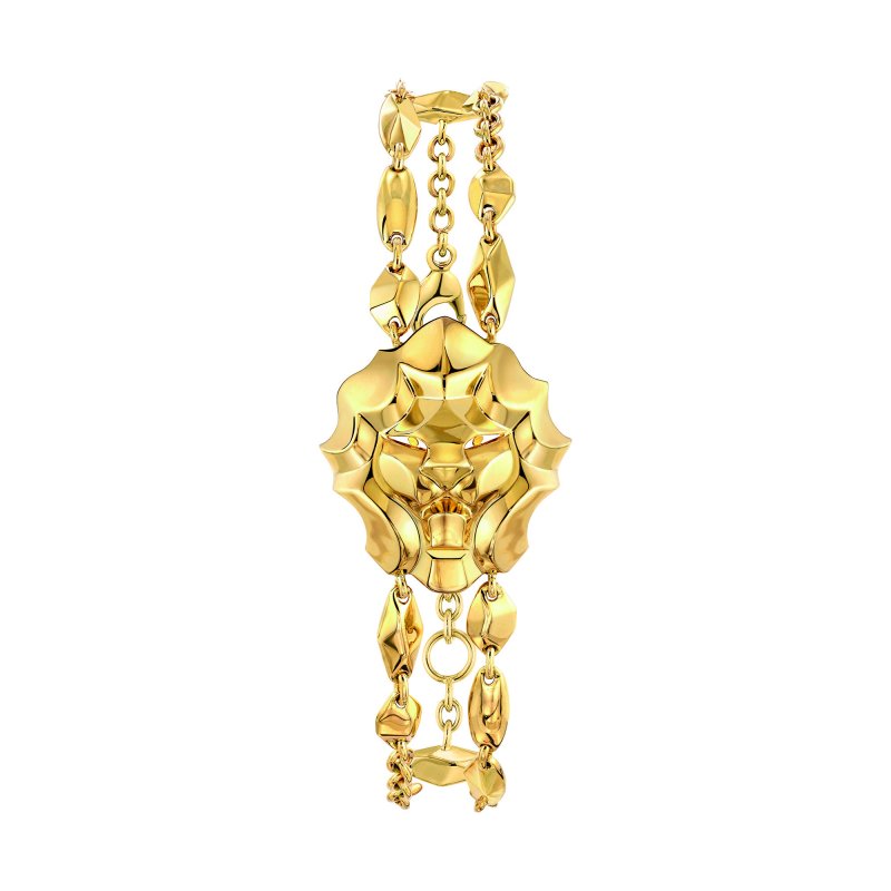 After making its first appearance in Chanel’s high jewelry in 2012, the Lion is once again the focus of the house’s latest jewelry collection, Sous le Signe du Lion. Its power is unveiled through its bold geometric curves, which takes the form of a single gold monolith in the Lion Arty theme. As for the Lion Pépites theme, the curved lines are more drawn out, representing the lion’s lasting strength.