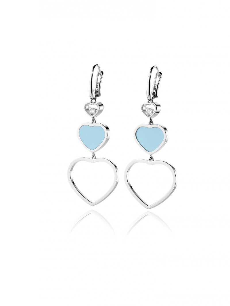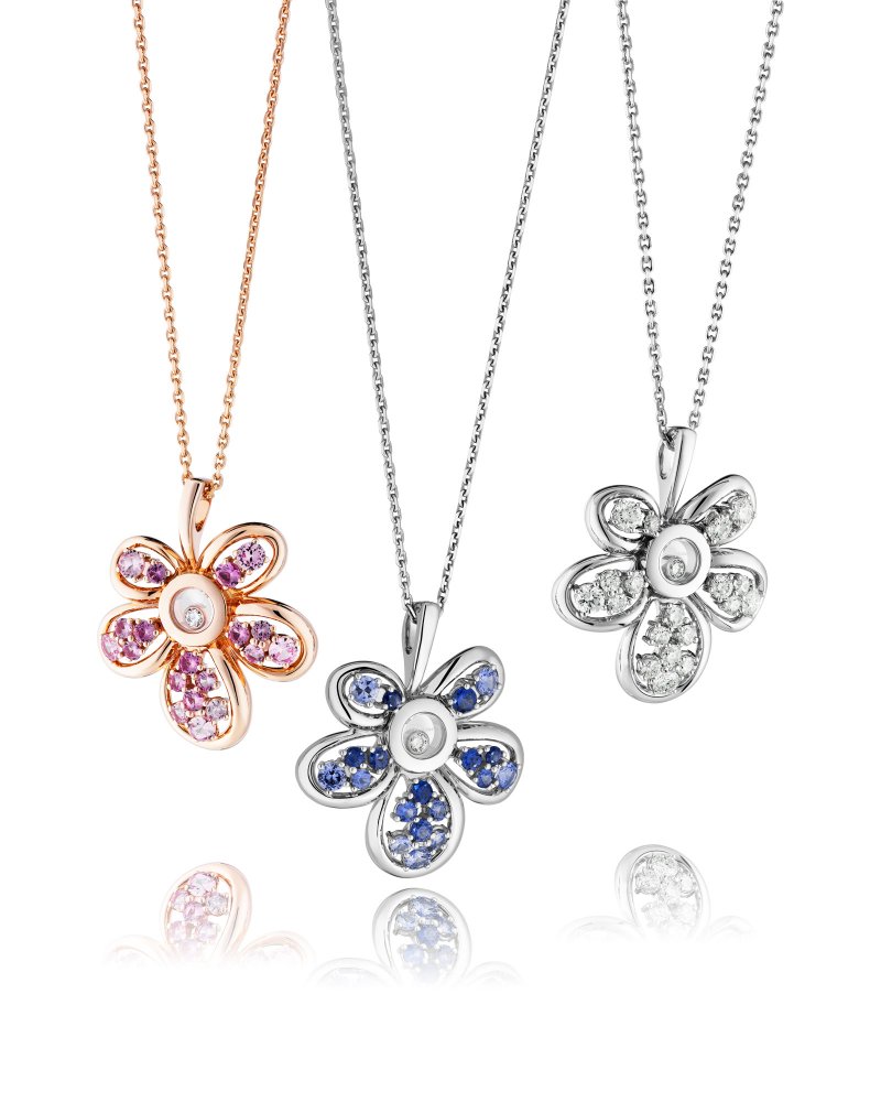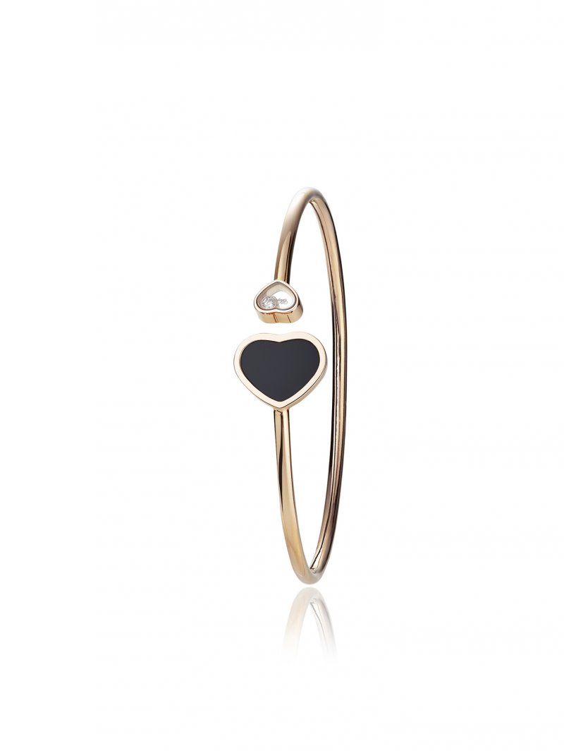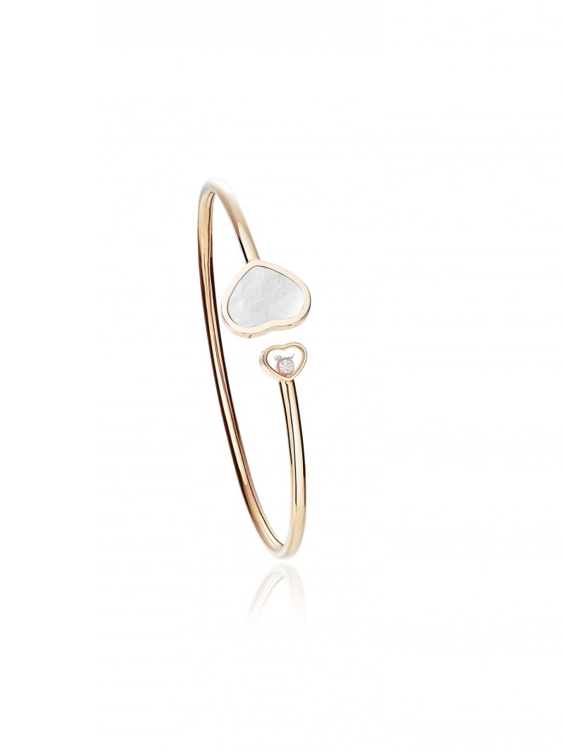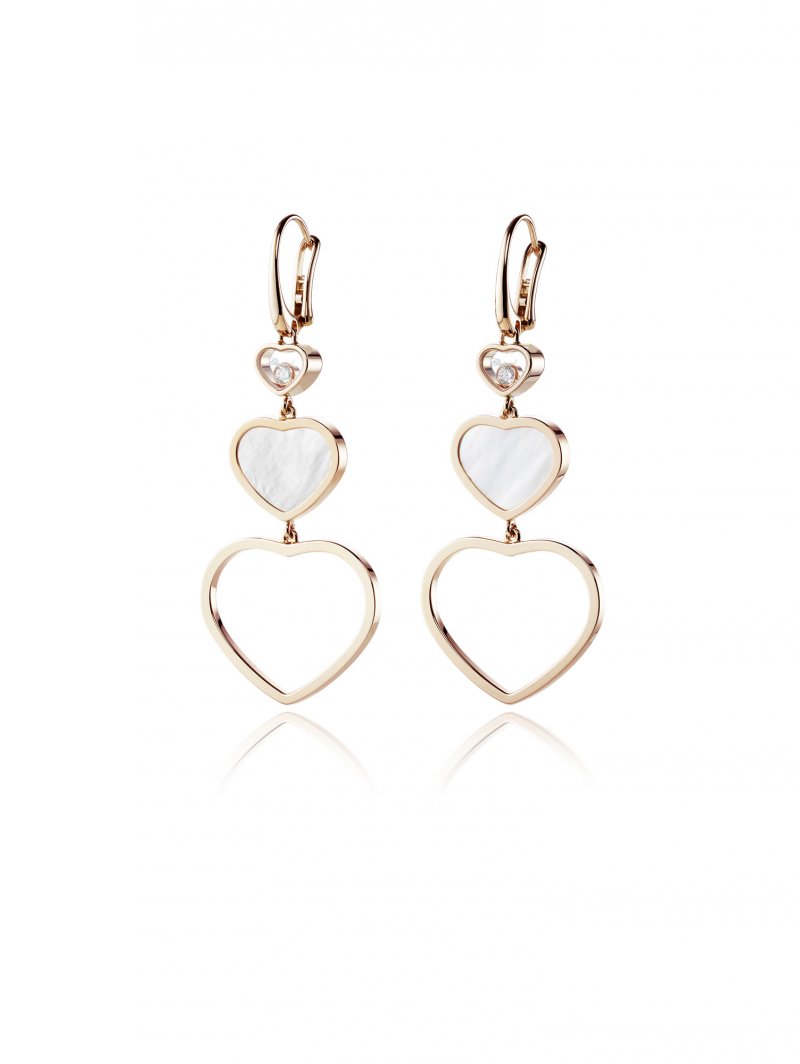 Inspired by nature, the new floral “Happy Diamonds” jewelry pieces reinterpret pop-art flowers with a modern flair and include a pendant, a ring and a pair of earrings available in 18-carat white or rose gold. Celebrating its passion for hearts, Chopard revisited the cherished motif and created a new look for it in the “Happy Hearts” collection. Considered a lucky charm, the heart was combined with precious colors. Therefore, the traditional openwork of the heart morphed into turquoise, onyx or mother-of-pearl featured in a thin white or rose-gold chain.