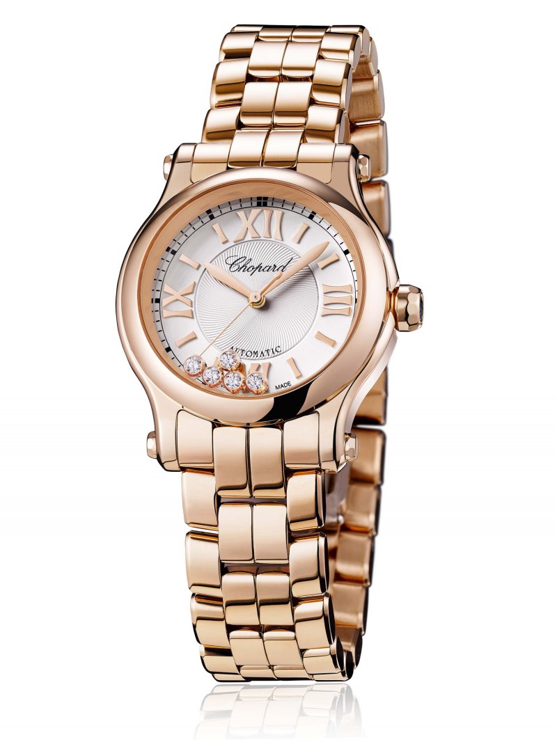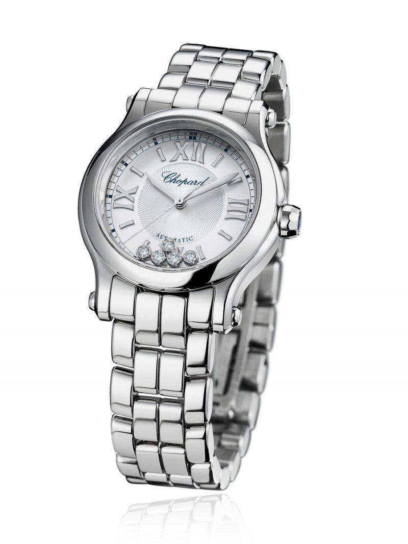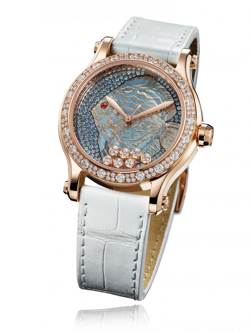 The carefree spirit of the dancing diamonds was also a part of the new “Happy Diamonds” watches. Their signature design features 5 round-cut sparkling diamonds that move freely between two sapphire crystals.