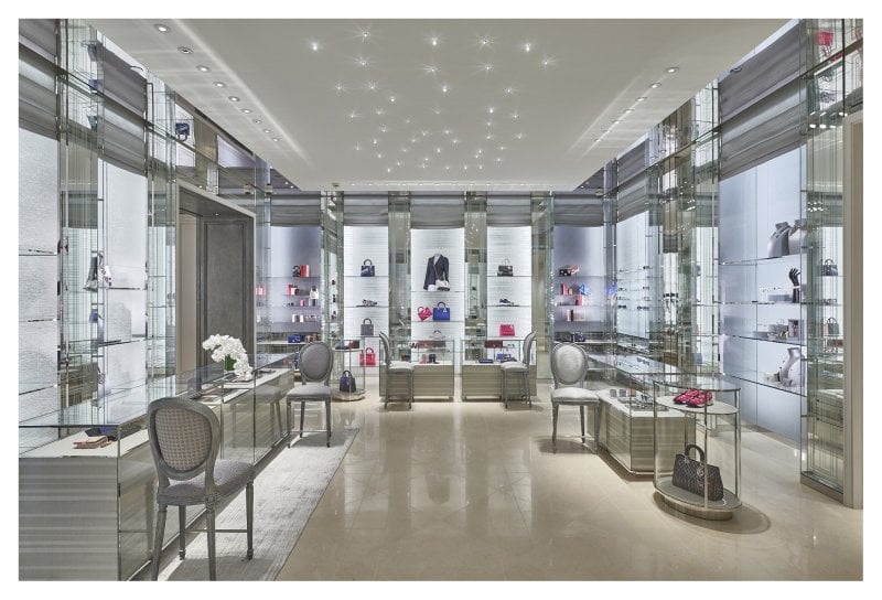 The façade of the boutique sees artwork by Mats Gustafson and the interior hosts the latest ready-to-wear collection, signature handbags and shoes each sectioned in their own area. A VIP watches room and salon is also included in the new boutique and surely destined to become a favorite spot for loyal Dior clients. Reserved for private appointments, the salon allows visitors to feel as though they’re invited into Monsieur Dior’s private quarters and beautifully decorated with designs by Stefan Leo, Laurent Chauvat and Ginger and Jagger.
