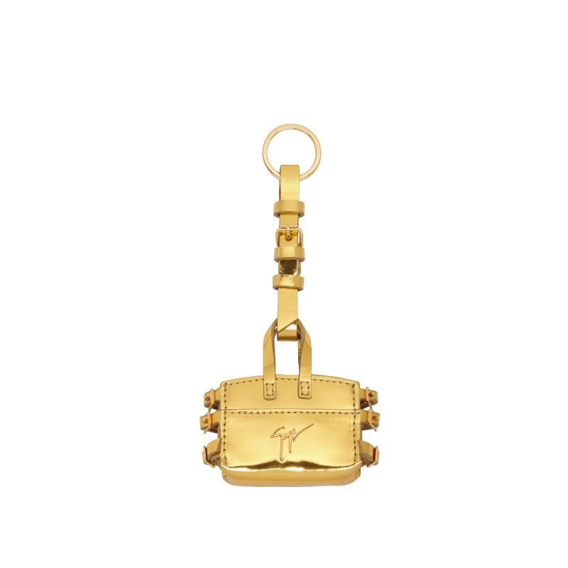 Fun quirky holiday gifts are also included in the collection. A bag-shaped leather key chain with a metallic gold heel or a bronze leather zip pochette will make anyone smile.