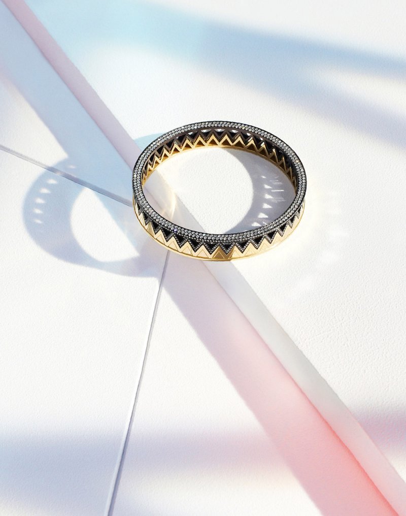 The design is based on my wedding ring, which I also designed. So many people were asking about it that I decided to make the bangles, a very oriental jewellery tradition. The design is based on traditional Saudi patterns. I find that most of Saudi and Islamic patterns are timeless and modern, especially those based on geometry.