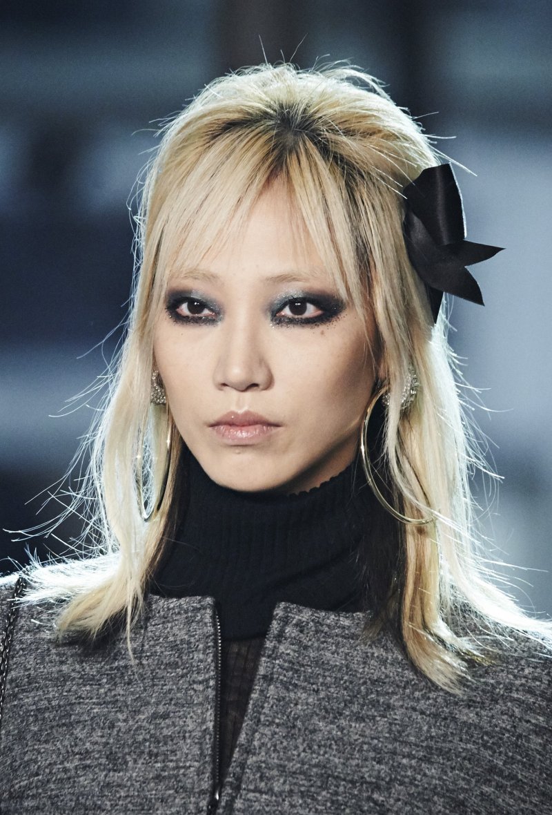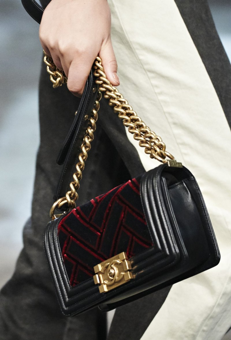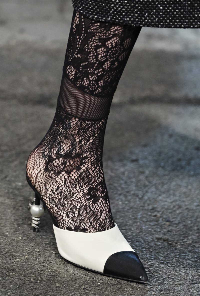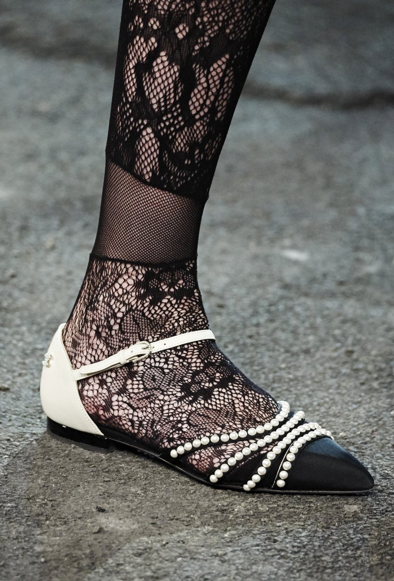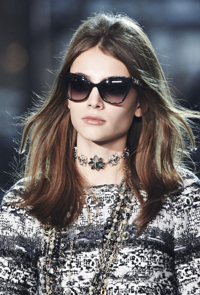 Sticking to the iconic Chanel baseline, Lagerfeld sprinkled a dash of Italian glamour to the designs and of course the accessories. One couldn’t help but notice the prominence of the accessories used in the show, adding the finishing touch to every outfit displayed. But what struck us the most was their unique aura. You could actually spot their originality from miles away, starting with the quilted or pearled metal cuffs, moving on to the large hoop earrings, the multi row grey pearl long necklaces underlined with a satin bow, and ending with the ever so eclectic camera bag, and the pearl embroidered shoes.