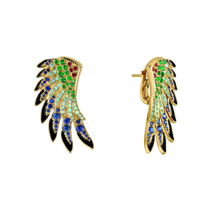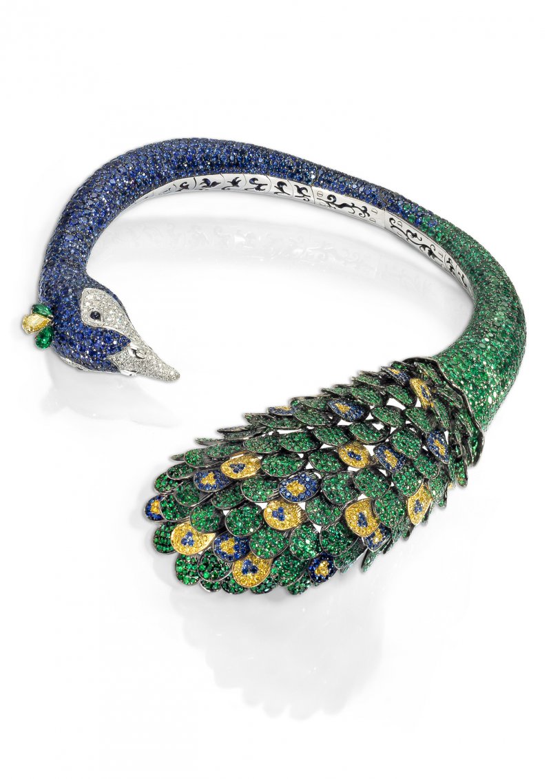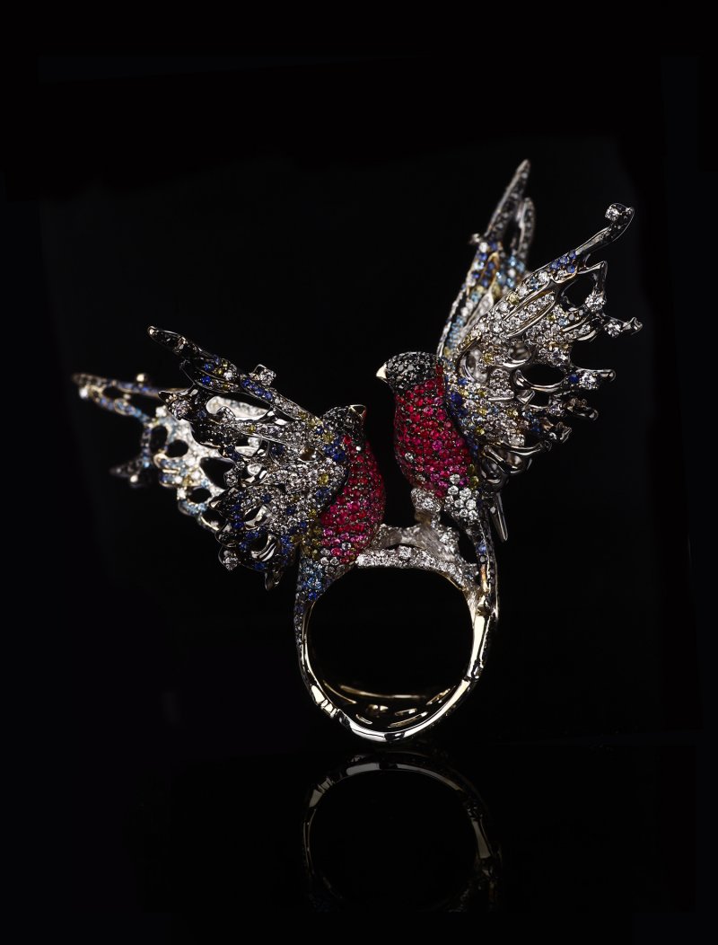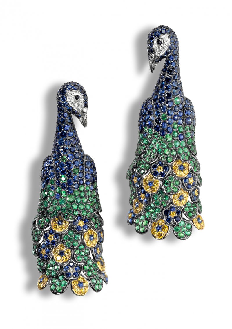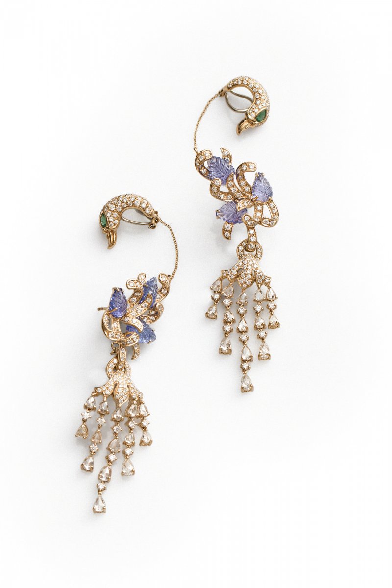 Luxury houses such as Boucheron, Chopard, Cartier, Carrera Y Carrera, Graff, Fabergé, artist jewelers like Jewellery Theatre, Morphée Joaillerie, Palmiero, Why Not Sky and independent designers like Arman Suciyan, Ilgiz F, Ichien, Roberto Coin, Theo Fennel have regularly found their muse in birds: bullfinches, doves, flamingos, cranes, humming birds, parrots, peacocks, swans, swallows, birds of paradise, owls and even mythical creations. Meanwhile, peacocks, parrots and swans have carved a niche for themselves as key motifs in Indian jewelry and Mughal inspired creations, as seen in Farah Khan’s designs.