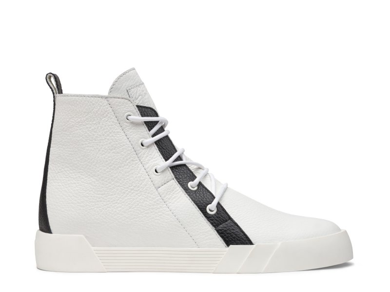 Shiny leather, side zippers, and metallic plaques adorn the shoes, while some models adopt ankle-high, edgier versions. A palette of white, black, grey, beige, electric blue and camel takes over the designs, relating it to its native rock-and-roll theme.