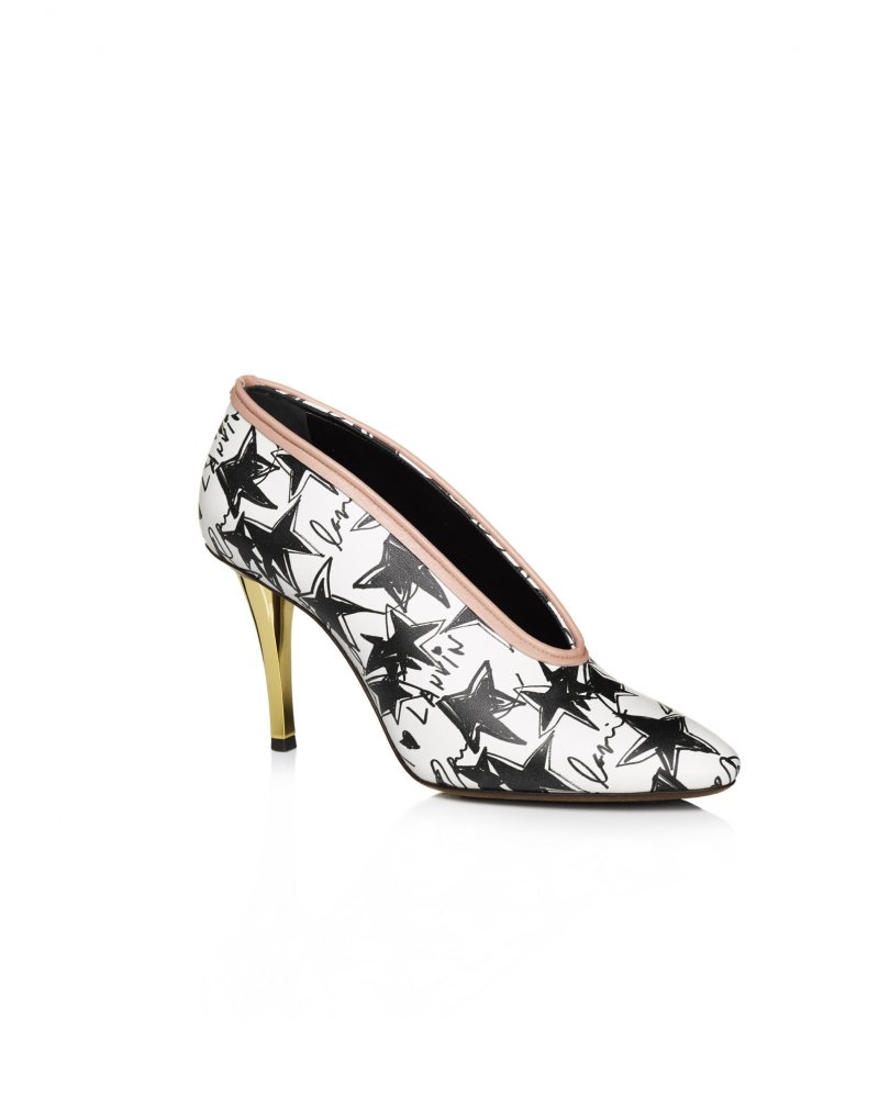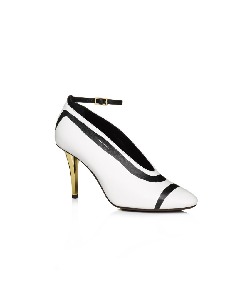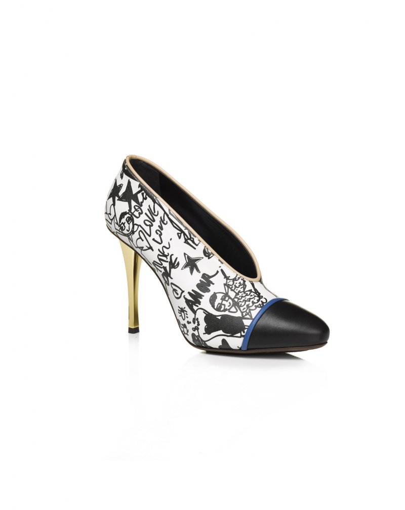 The staple Lanvin Blue appears also on the interiors of the shoes, combined with the same patterns as the bags, but exceptionally magnified with this season’s gold heels.