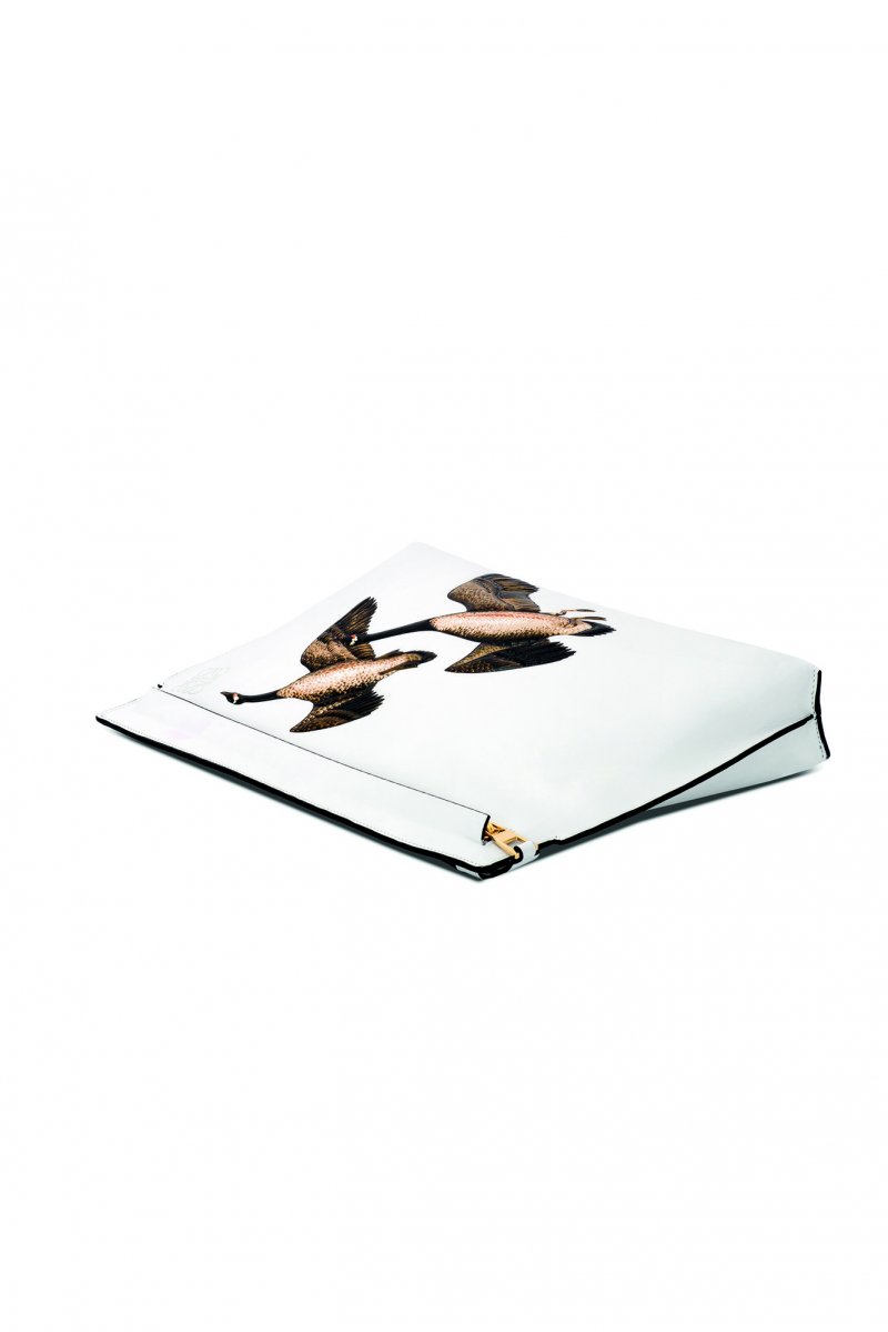 In a world where sometimes consistency is a necessity, Loewe introduces a new vision of fusion: hard and soft, average and extraordinary come together in a wonderful ensemble. Suede, precise strips, transparency, textural variety, metal hardware, shattered mirror pieces and a Canadian goose are all elements of the designs.